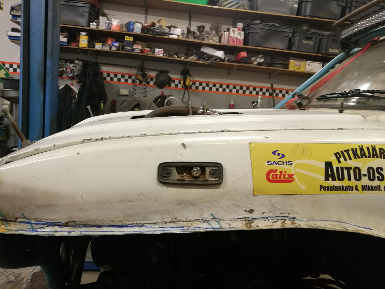 Etupään korvakkeet tuli tehtyä tolppia varten valmiiks. Konepeltiin joutuu pienet skoopit tekemään että tolpat mahtuu paikoilleen