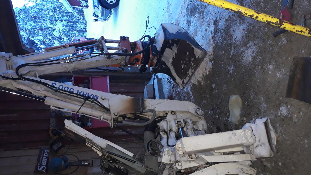 Eli Maran geometriaa. Tuosta poikki... Tuommonen väliin... Ja johan pelaa. Eli ongelma oli se että kun kaivupuomi on vedetty eteen , oli kauha myös maassa.