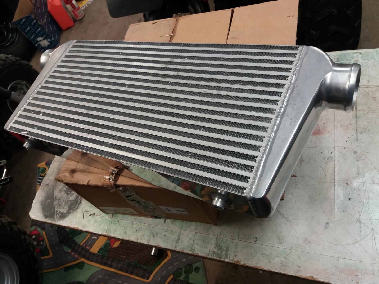 Välijäähdytin, 600mm x 300 mm x 76 mm, 3" lähdöillä. Lähes uudenveroinen. Muutaman ajokerran autossa kiinni, ei öljyinen sisältä.