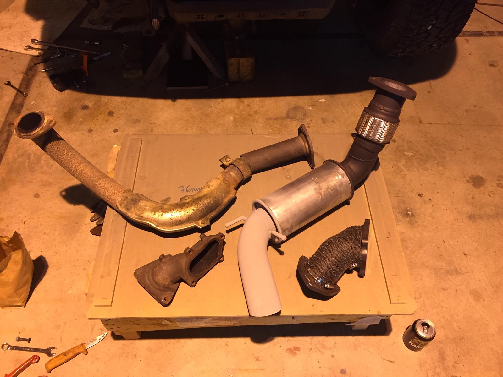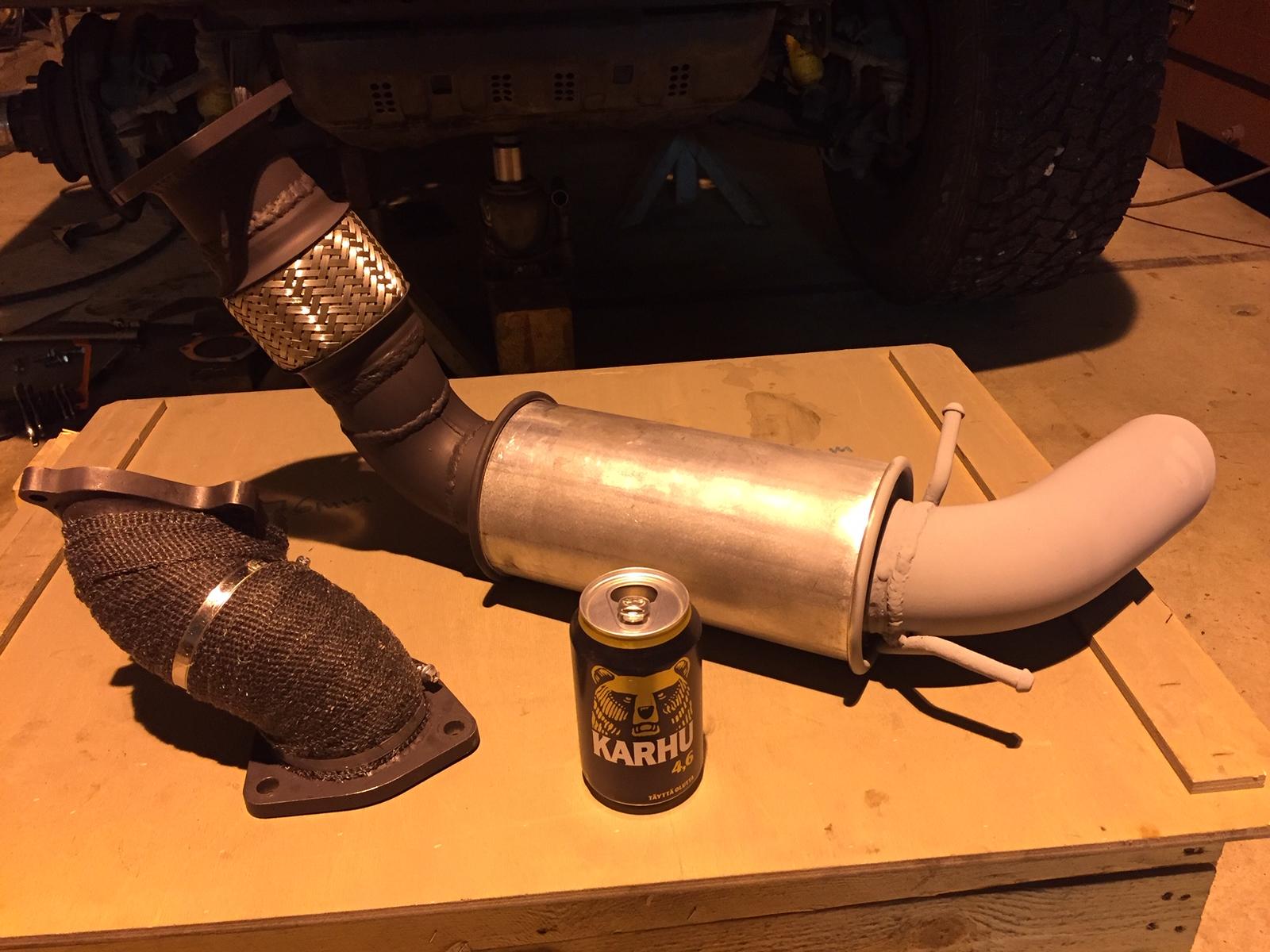 joo on tehty, turbon puoleinen mutka on venytelty 50mm akselin päällä ns soikeaksi vastaamaan laipan muotoa ja hukkaportin puoleinen pää on leikattu siitä mutkasta auki parista kohtaa ja muutama terävä pyramiidin muotoinen pala leikattu kaveriksi silleen että muoto suunnilleen säilyy pyöreänä.