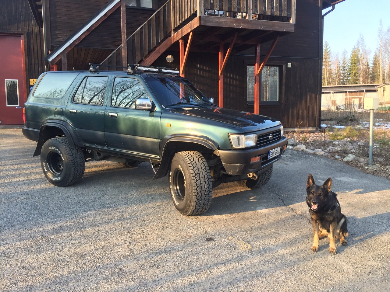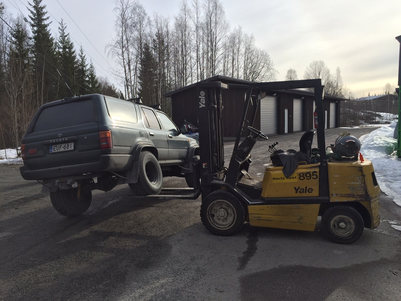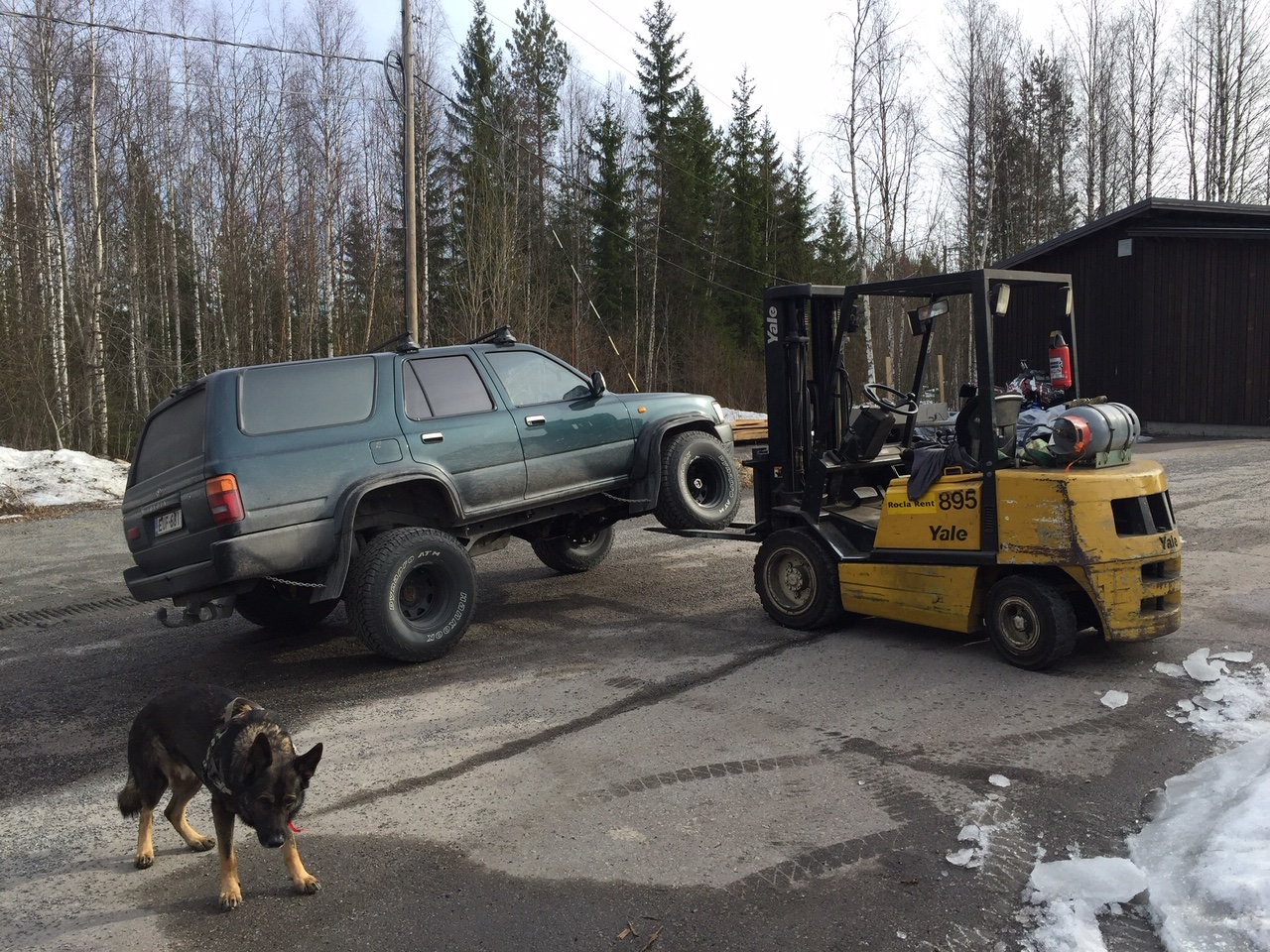 Joo niin sitä on arki koittanut ja auto on jokapäiväisessä ajossa. Edestäkin heivasin kallistuksen vakaajan odottamaan seuraavaa katsastusta. Sitten nostelin rukilla nurkista, että paljonko tuo nyt sitten mahtaa joustaa oikein, n.45cm edestä ja takaa ilman vakaimia, edessä vaikutti n.5cm ku otti vakaimen pois ja maantieajoon ei merkittävästi ajolleen muuttunut. Pienimuotoinen makkaranpaisto safarikin yhtenä päivänä kaverin kanssa ajeltiin, lähinnä auraamattomia mettäteitä ja sellasia, lunta oli paikka paikoin paraimmillaan vielä 70cm. Alla nuo hankookin AT renkaat, ihmeen hyvin se meni, pari paikkaa oli missä jäi jumiin oikeen huolella, onneksi kaverilla on lantikka lukoilla niin siitäkin selvittiin. Mietittiin vaan ku porukka selittää että tavan maasturilla ajellaan sellasissa hangissa että lumi lentää nokaapellin yli??? En tiiä mutta tuollasessa kevään sulattamassa sössölumessa oli se lantikankin meno kyllä melkosta eestaas veivaamista. Loppujen lopuksi kuitenkin positiivinen yllätys kuinka hyvin, ainakin omasta mielestäni tuollanen käytännössä vakio maasturi eteni hangessa!!! Vieläkään ei ole mitään särkynyt!!! Sitten sain pirssiin puuttuvia sisätilan listoja, niitä ruuvvailin paikalleen ja työkalupakille värkkäsin tellingin takatilan oikeelle seinälle, ei ole enään viemässä lattia tilaa. Noo, taas käytiin vähän safarihommissa, lumet oli taasen huvennu jo aika lailla, nyt testailin ekaa kertaa eri rengas paineita, eipä ollut merkittävää eroa ainakaan sössöhangessa nuilla AT pyörillä, 1-2bar. No viikko sitten huomasin facessa nivalan nurkilla myynti ilmon 33/12.5r15 insan special traceista ja lukkovanteista, kaupat kiinni ja renkaan haku reisulle. Jo vain saatana rupes auto menemään eritavalla hankipöykyssäkin ja sössöhangessa, paineet vajaa 1 bar. Nuilla AT renkailla sai kokoajan ajella sillein sukkasiltaan ja varovasti että millonkohan se ruopasee ittensä junttaan ja kokoajan lämä tiskjissä. Nuilla insoilla saa ajella pintakaasulla niihin verrattuna, on kyllä järisyttävä ero pidossa! Vanteet on sen näköset että on itse tehty tai keskiöt vaihdettu, tai muutettu et lukua, kun laikka on hivellyt vannetta ja joku itse hitsannut keskiöt. Sellanen efekti tuli nuilla pyörillä nyt esiin, että välitys käy pitkäksi kivikko hiivinnässä ja kytkimen saa kyllä luistamaan, mitähän se oli jos löytyis vielä lukot! Samoiten nyt on pokkaa ajaa paljon pahempaan paikkaan ja auton takaylitys kyllä rupee haittaamaan samoiten vetokoukku hässäkkä! Totta siinä olin koiraa juoksuttamassa metässä vkonloppuna ja kotio ku piti lähtee niin peruutin kuskinpuolen takanurkan komeeseen petäjään, takapuskuri aivan mykkyrään ja takaluukkuun vittumaisen terävä vekki, no rupee kaippa siis tästäkin hytistä lähteen tuo tyttömäinen kiilto ja suoruus. haha. Vähän siinä sitten tuli ynnäiltyä tätä pirssiä ja tuumasin ainakin näin alkuun, että ne oikeet puskurit, helmat ja pohjapanssarit tähän vielä kai pitää värkätä, rupeisko sitten käyttöauto oleen ok kondiksessa. Nuista insa renkaista, vanteen keskiöt on hitsattu (oletettavasti) kieroon kun rengas vipottaa niin rankasti, ne taidan vielä värkätä suoraksi ja maalata vanteet. Semmosta settiä tällä kertaa, ajellaan ny ku viimevuoden kesälomakin alkoi parahiksi! |