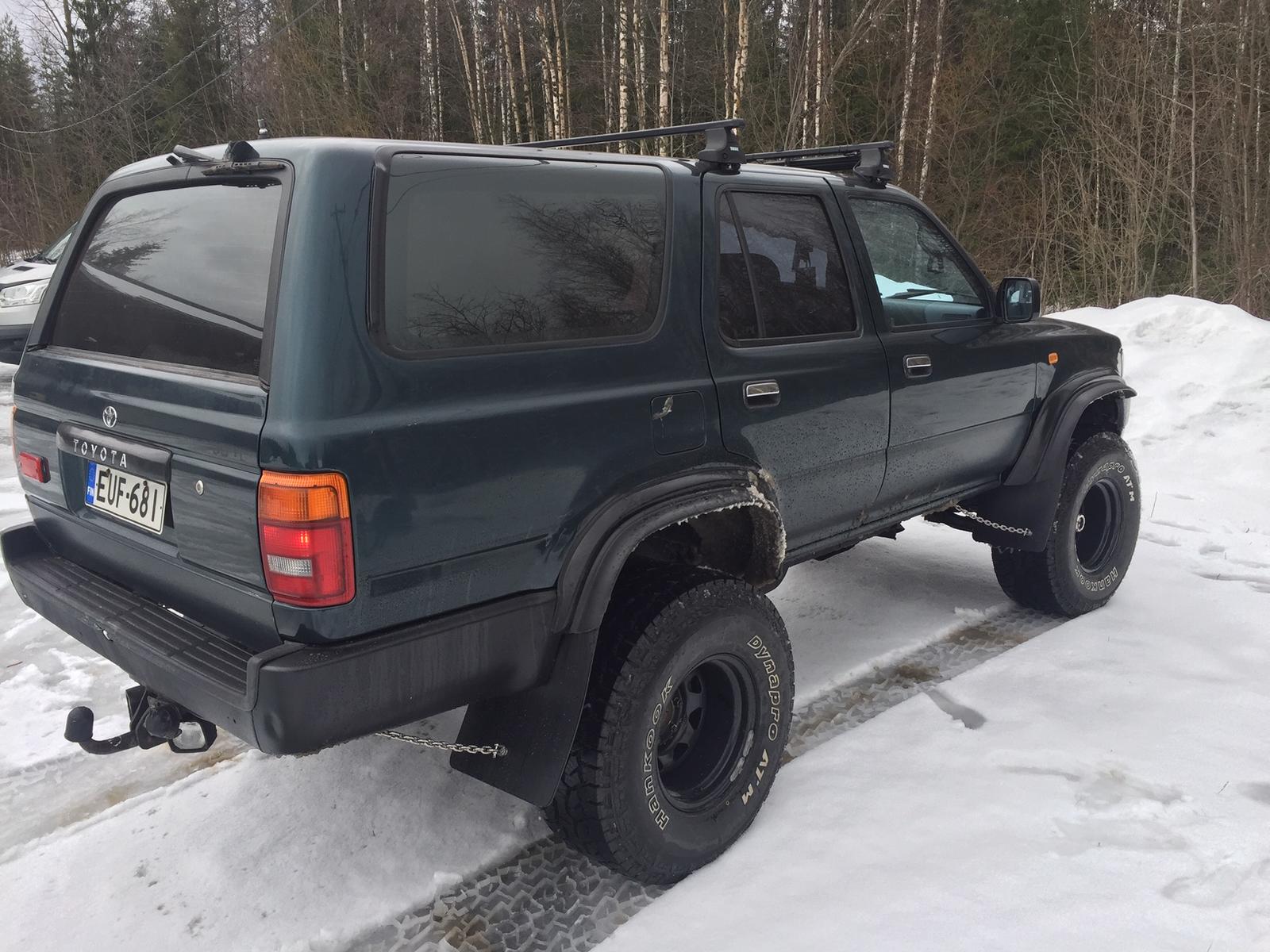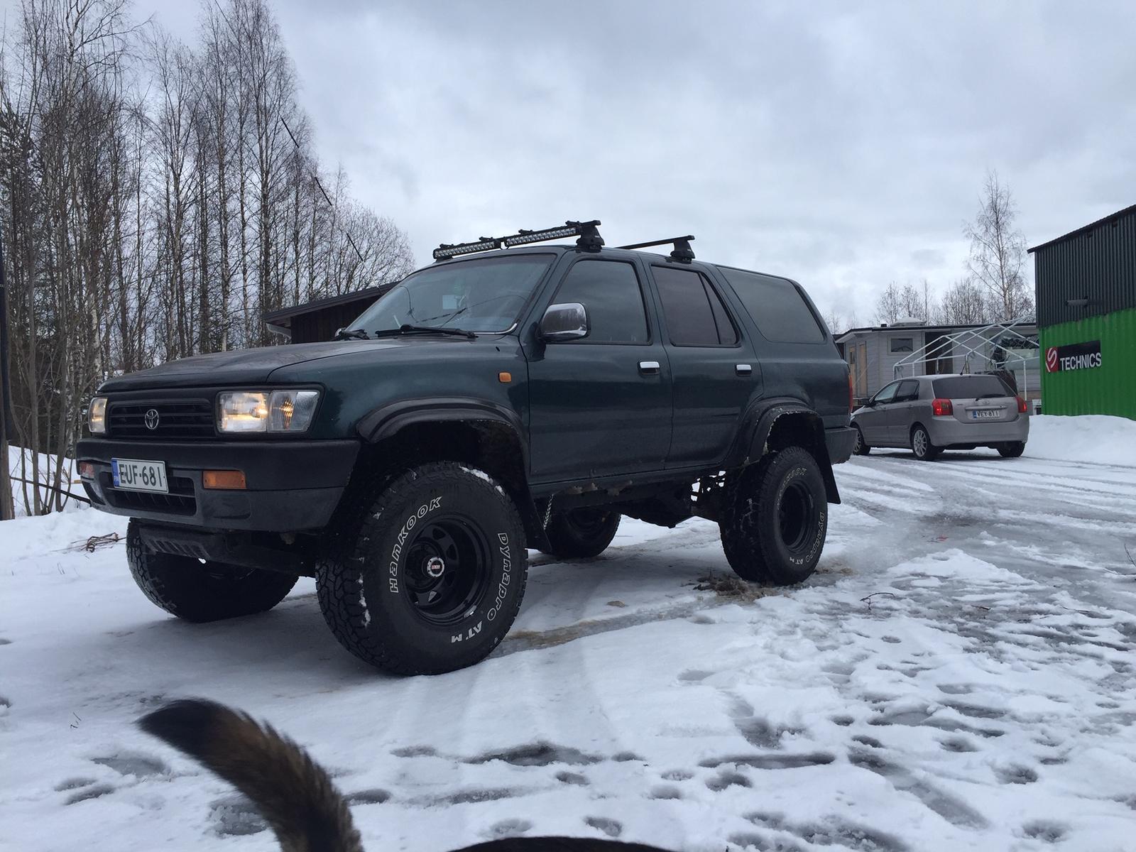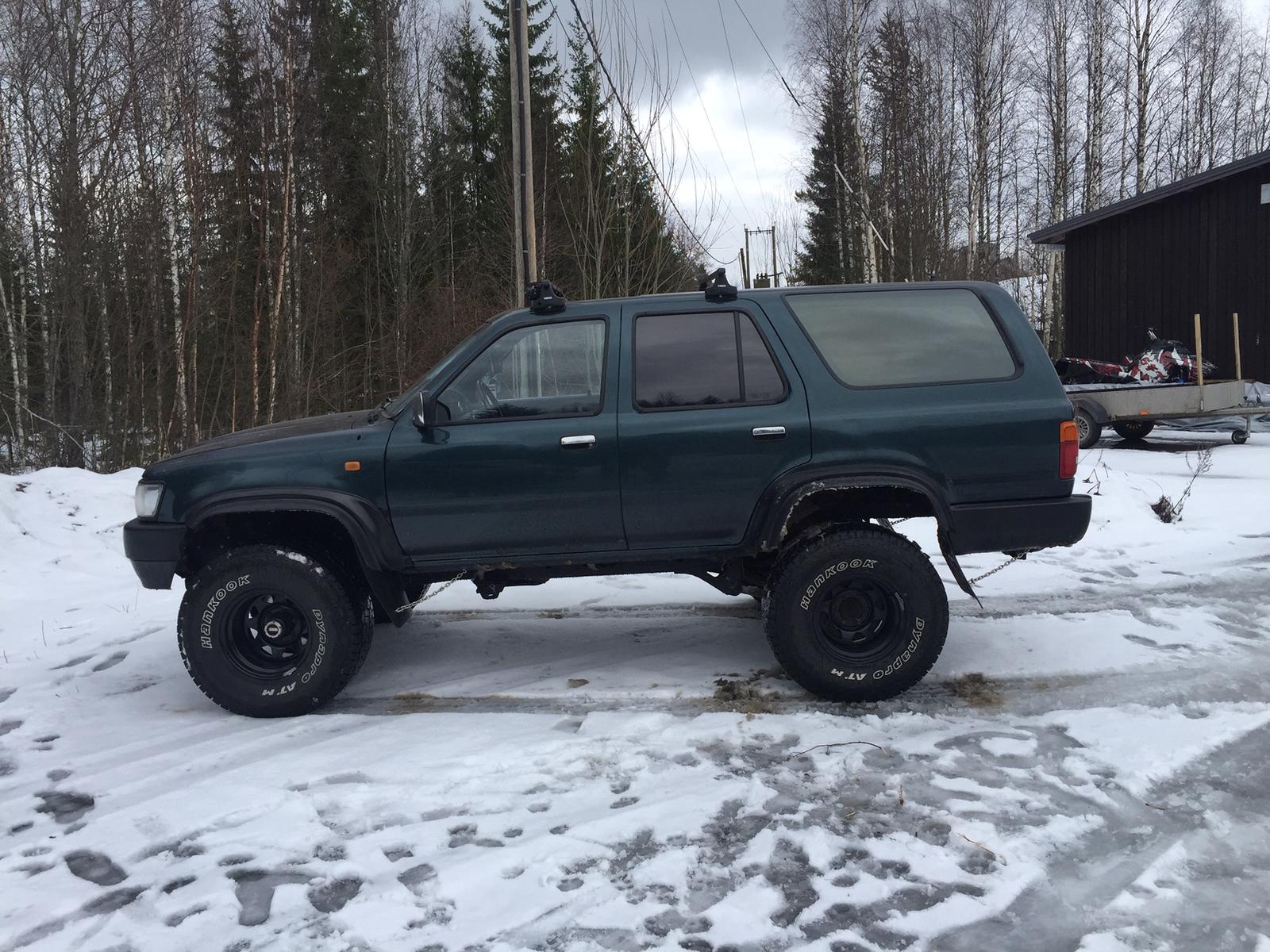 Joo niin sitä on arki koittanut ja auto on jokapäiväisessä ajossa. Edestäkin heivasin kallistuksen vakaajan odottamaan seuraavaa katsastusta. Sitten nostelin rukilla nurkista, että paljonko tuo nyt sitten mahtaa joustaa oikein, n.45cm edestä ja takaa ilman vakaimia, edessä vaikutti n.5cm ku otti vakaimen pois ja maantieajoon ei merkittävästi ajolleen muuttunut. Pienimuotoinen makkaranpaisto safarikin yhtenä päivänä kaverin kanssa ajeltiin, lähinnä auraamattomia mettäteitä ja sellasia, lunta oli paikka paikoin paraimmillaan vielä 70cm. Alla nuo hankookin AT renkaat, ihmeen hyvin se meni, pari paikkaa oli missä jäi jumiin oikeen huolella, onneksi kaverilla on lantikka lukoilla niin siitäkin selvittiin. Mietittiin vaan ku porukka selittää että tavan maasturilla ajellaan sellasissa hangissa että lumi lentää nokaapellin yli??? En tiiä mutta tuollasessa kevään sulattamassa sössölumessa oli se lantikankin meno kyllä melkosta eestaas veivaamista. Loppujen lopuksi kuitenkin positiivinen yllätys kuinka hyvin, ainakin omasta mielestäni tuollanen käytännössä vakio maasturi eteni hangessa!!! Vieläkään ei ole mitään särkynyt!!! Sitten sain pirssiin puuttuvia sisätilan listoja, niitä ruuvvailin paikalleen ja työkalupakille värkkäsin tellingin takatilan oikeelle seinälle, ei ole enään viemässä lattia tilaa. Noo, taas käytiin vähän safarihommissa, lumet oli taasen huvennu jo aika lailla, nyt testailin ekaa kertaa eri rengas paineita, eipä ollut merkittävää eroa ainakaan sössöhangessa nuilla AT pyörillä, 1-2bar. No viikko sitten huomasin facessa nivalan nurkilla myynti ilmon 33/12.5r15 insan special traceista ja lukkovanteista, kaupat kiinni ja renkaan haku reisulle. Jo vain saatana rupes auto menemään eritavalla hankipöykyssäkin ja sössöhangessa, paineet vajaa 1 bar. Nuilla AT renkailla sai kokoajan ajella sillein sukkasiltaan ja varovasti että millonkohan se ruopasee ittensä junttaan ja kokoajan lämä tiskjissä. Nuilla insoilla saa ajella pintakaasulla niihin verrattuna, on kyllä järisyttävä ero pidossa! Vanteet on sen näköset että on itse tehty tai keskiöt vaihdettu, tai muutettu et lukua, kun laikka on hivellyt vannetta ja joku itse hitsannut keskiöt. Sellanen efekti tuli nuilla pyörillä nyt esiin, että välitys käy pitkäksi kivikko hiivinnässä ja kytkimen saa kyllä luistamaan, mitähän se oli jos löytyis vielä lukot! Samoiten nyt on pokkaa ajaa paljon pahempaan paikkaan ja auton takaylitys kyllä rupee haittaamaan samoiten vetokoukku hässäkkä! Totta siinä olin koiraa juoksuttamassa metässä vkonloppuna ja kotio ku piti lähtee niin peruutin kuskinpuolen takanurkan komeeseen petäjään, takapuskuri aivan mykkyrään ja takaluukkuun vittumaisen terävä vekki, no rupee kaippa siis tästäkin hytistä lähteen tuo tyttömäinen kiilto ja suoruus. haha. Vähän siinä sitten tuli ynnäiltyä tätä pirssiä ja tuumasin ainakin näin alkuun, että ne oikeet puskurit, helmat ja pohjapanssarit tähän vielä kai pitää värkätä, rupeisko sitten käyttöauto oleen ok kondiksessa. Nuista insa renkaista, vanteen keskiöt on hitsattu (oletettavasti) kieroon kun rengas vipottaa niin rankasti, ne taidan vielä värkätä suoraksi ja maalata vanteet. Semmosta settiä tällä kertaa, ajellaan ny ku viimevuoden kesälomakin alkoi parahiksi! |