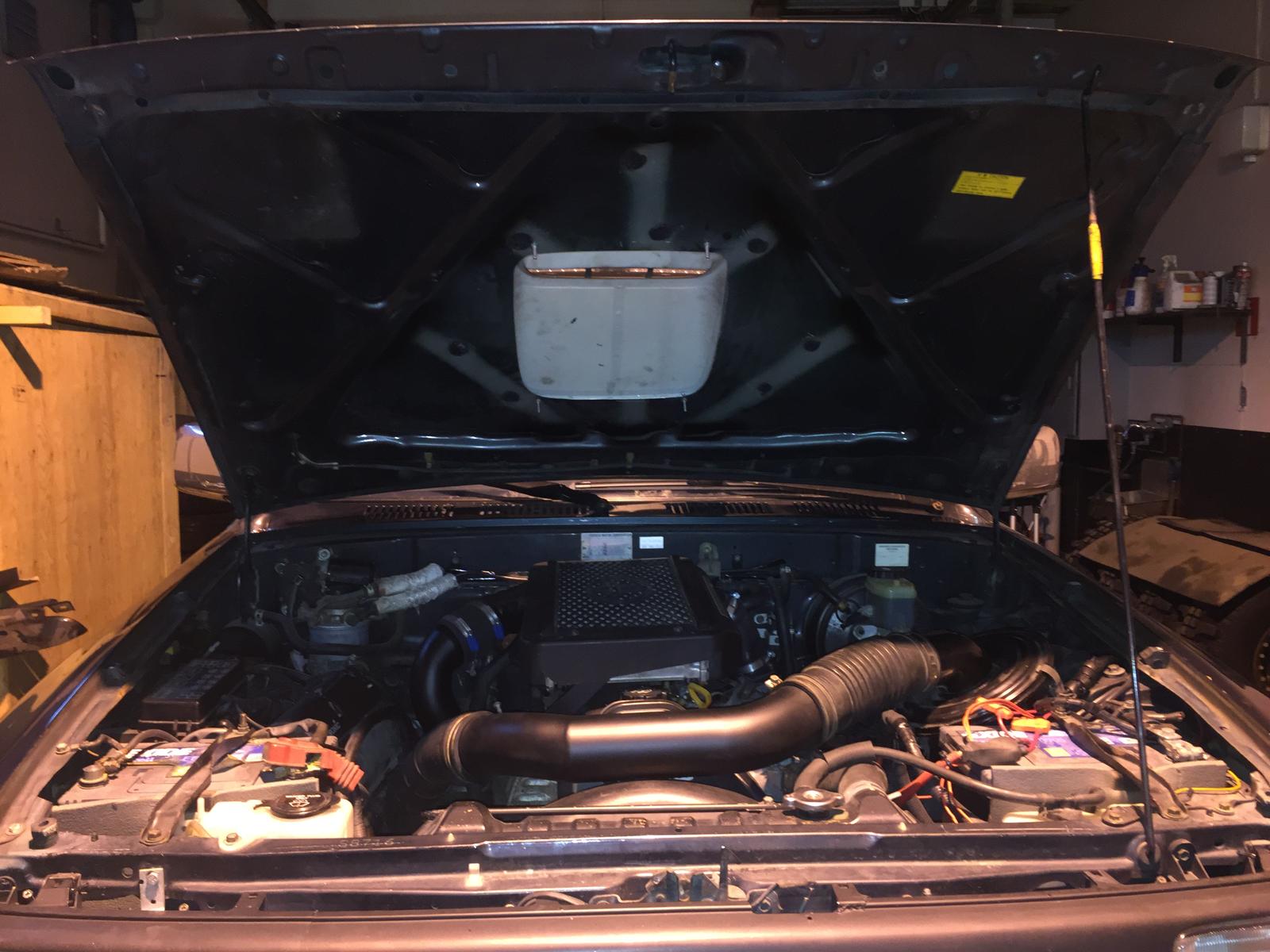 Eteen ja taakse tein polyuretaani matosta läpät, samoiten sisälokasuojat. Eteen piti värkkäillä korin jatkoksi alumiinista palat kun matsku ei olis muuten riittänyt ja sai sitten suoraa mattoa vaan leikata, nämäkin pultti/mutteri liitoksilla niin saa kätevästi tieltä pois jos tarvittee. Sitte laitoin nuo roikkumaan vielä rosteriketjulla vähän länkälleen niin eivät ole heti pyörän päällä jos hankipöykyssä tarttee venkslata. Omasta mielestä melkein madmax meininkiä haha.. Mitäs sitten? Kaikki viat on nyt korjattu autosta mitä on löytynyt/tiedossa. Kaikki normi huollot on tehty. Mitään ei periaatteessa tarvitse hankkia ns tulevia varusteluja varten. Varmaan tässä nyt tovi ajellaan ilman mitään sen kummempia virittelyjä. Mutta mutta... Tehonpaskaahan näissä ei ole IKINÄ tarpeeksi jotenka? Caldinan välijäähytinhän multa löytyi jo valmiiksi ja se passaa aika hienosti kannen päälle. Kiinnikkeet sille joutuu värkkäämään, tuntus etä siinä on isoin homma saada niistä fiksut ja kestävät. Sitten koneistaa vakio imusarjan putken tilalle pieni tökö mihkä saa silkkari letkun kiini, ahtimen puolen liitos coolerille onnistuu yhellä mutkalla. Skuuppi nokkapeltiin löytyy myös. Sitten nokkapellin ja kuulerin väliin joku joustohetula? Imuputken joutuu tekeen uuden ahtimelta ilmanputsaripönttöön. Valmistunee 3" alumiinista. Samalla olis hauska laittaa safarisnorkkeli. Syöttöpumpun säätö ja ahtopaineen nosto. Nyt ahtaa ylämäessä 5 vaihteella 0.8bar. Mitähän tuonne kehtaisi turvallisesti laittaa? Eli vakio pumppu, vakio turbo, pakoputki 3" ja sitten se cooleri. Savut oli leimalla 0.74 eli pumppua ei varmaankaan ole ruuvattu? Meinasin että 1.0bar ja syötöt kohdilleen??? Missä vaiheessa kytkin rupee luistaan, mitä oletettava vakio kytkin edes kestää tehoa? Runkoon pannoilla pultattavat astinlaudat, mitoitus niin että kestää nostaa mistä vaan hiliftillä. Maastovaloja ja kattokoppa.. Mutta tehoa ensin.??? Saatana ku harmittaa etten muistanut ottaa aikaa vakio pakoputkella 60-80kmh kiihtyvyydestä. Täytyy nyt muistaa niin on jotakin vertailupohjaa. Kertokaa kokemuksia tuosta ahto/syöttö/cooleri jutuista! |