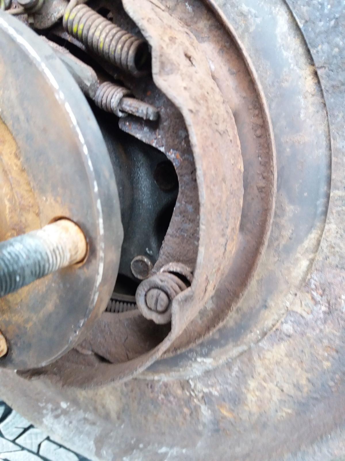 Alkoi olla aika uusia kässärin jarrukengät. Ei mennyt ihan "heittämällä" paikoilleen. Kuvista näkyy, että tappi johon kiristin laakeroidaan, on liian lyhyt ja jousien, jotka pitää kengät jarrukilpeä vasten, reikä on väärässä paikassa.
