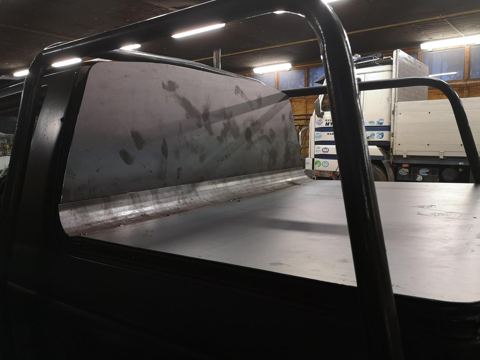 Näppärä projekti! Takaikkuna vois olla kiva, jotain kalteria tai ritläähän se vaatis suojaks jos lavalla kulettelee tavaraa mutta näkyvyyden ja ulkonäönkin takia vois olla hyvä lisä semmonen ikkuna.