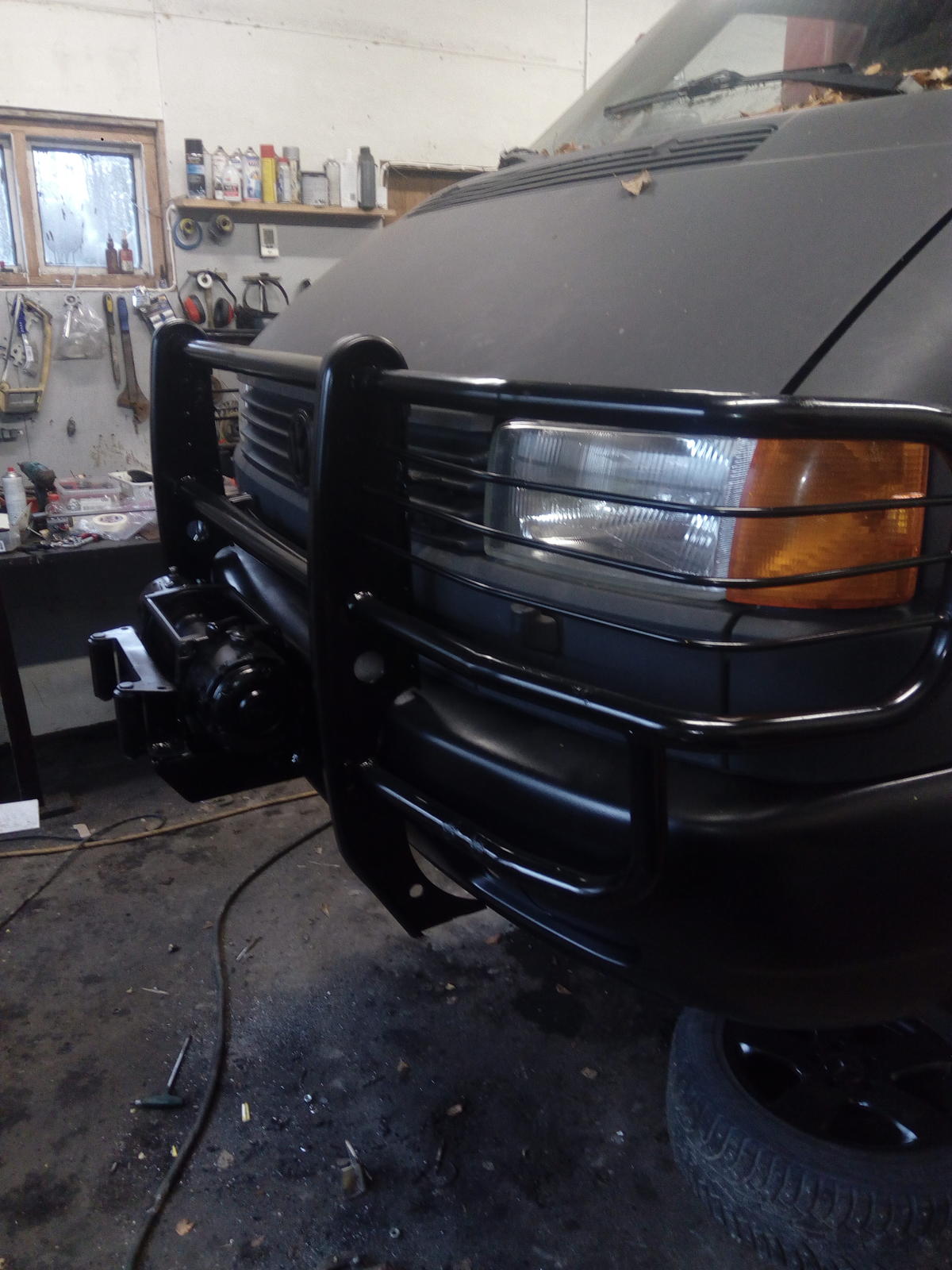 Projekti etenee hitaasti mutta varmasti. Ei taida montaa T4 Transporteria olla jossa on vinssi edessä ja takana. Takavinssiin tulee takaovien kohdalle irroitettava rauta jossa liukukita eli voi vinssata myös sivulle.