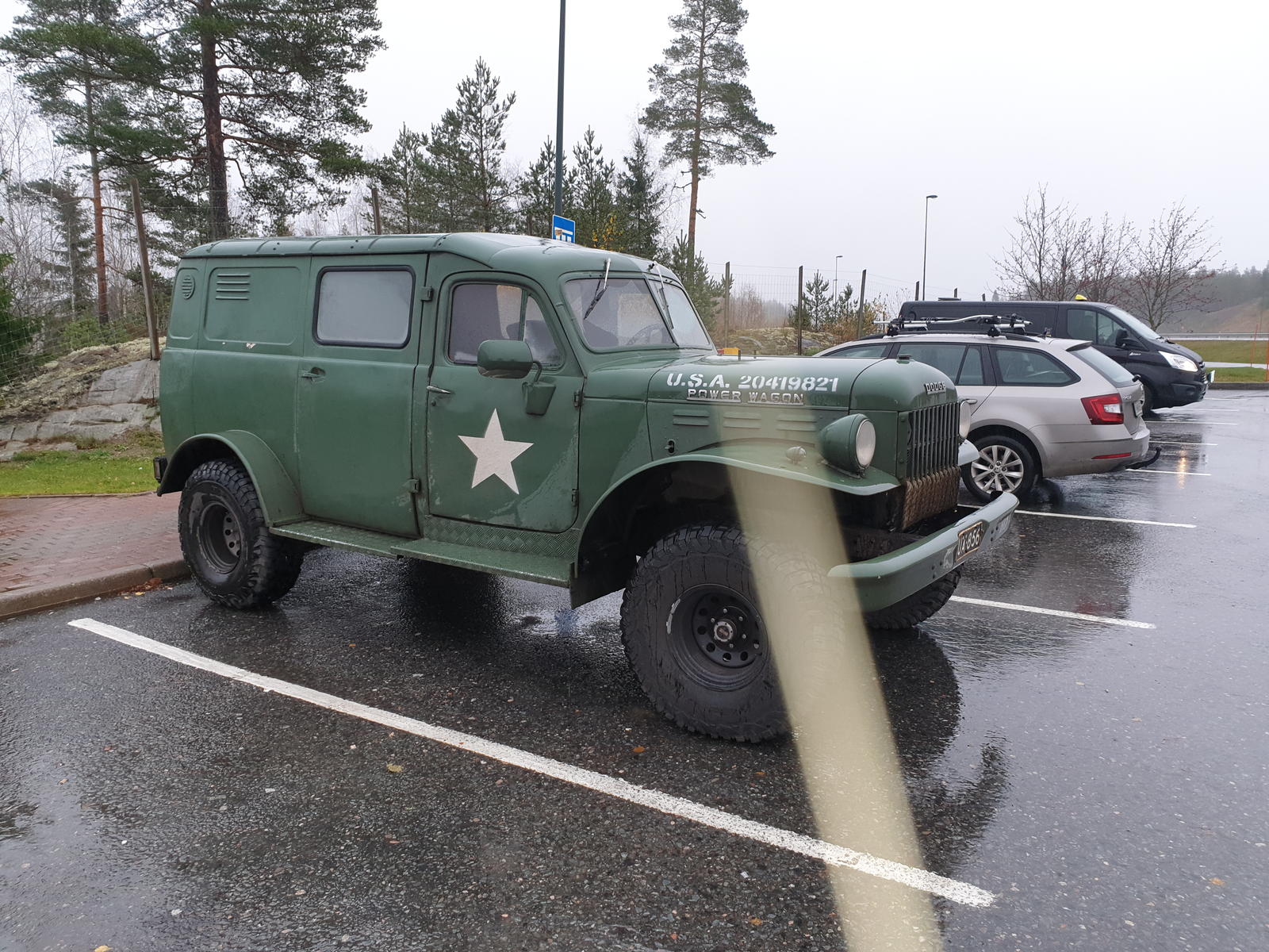 Tänään oli 1500. aikoihin Konalan kohdalla Vihdintiellä valoissa tähdin varustettu oliivinvihreä WC. Toisella kyljellä yksi jerry mutta ei muuta.