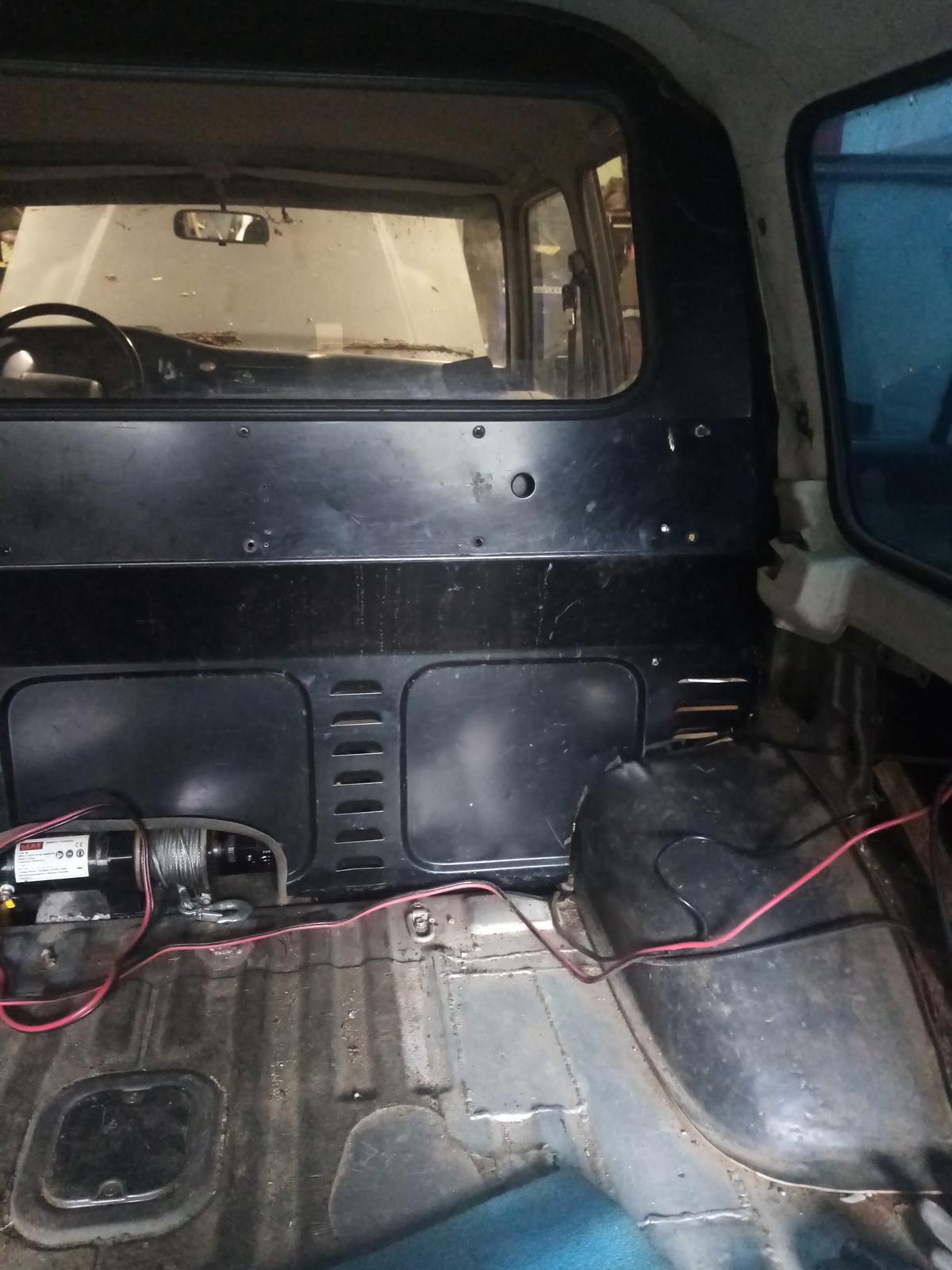 Vinssin asennusta. Autoon tulee hydrauliikka myös lumiauralle ja taakse meno ja paluu nosturiperävaunulle. Siitä projektista myöhemmin. Ulosottoon tulee hammaspyöräpumppu. Tietääkö joku voimanoton virallista tehonkestoa?