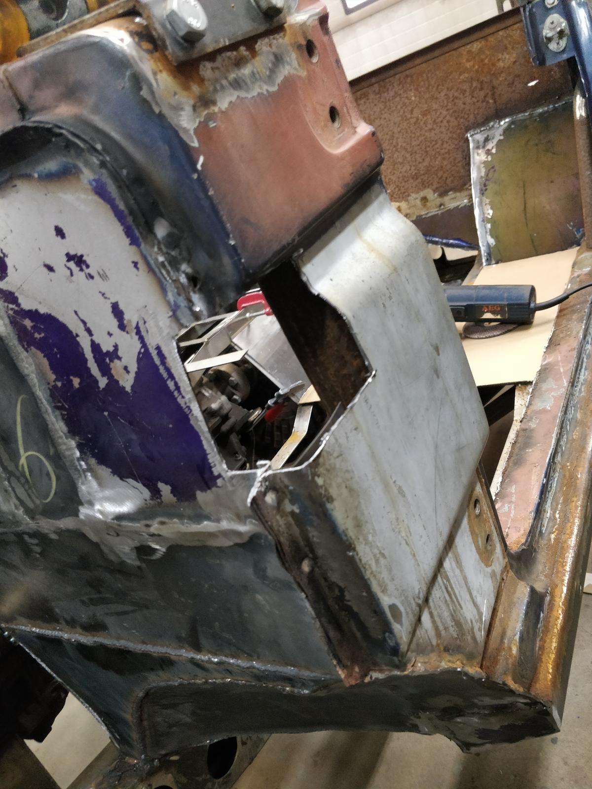 Myös ohjauksen sylinterille tehty korvakkeita akseliin ja pakosarjan hitsailin kasaan.