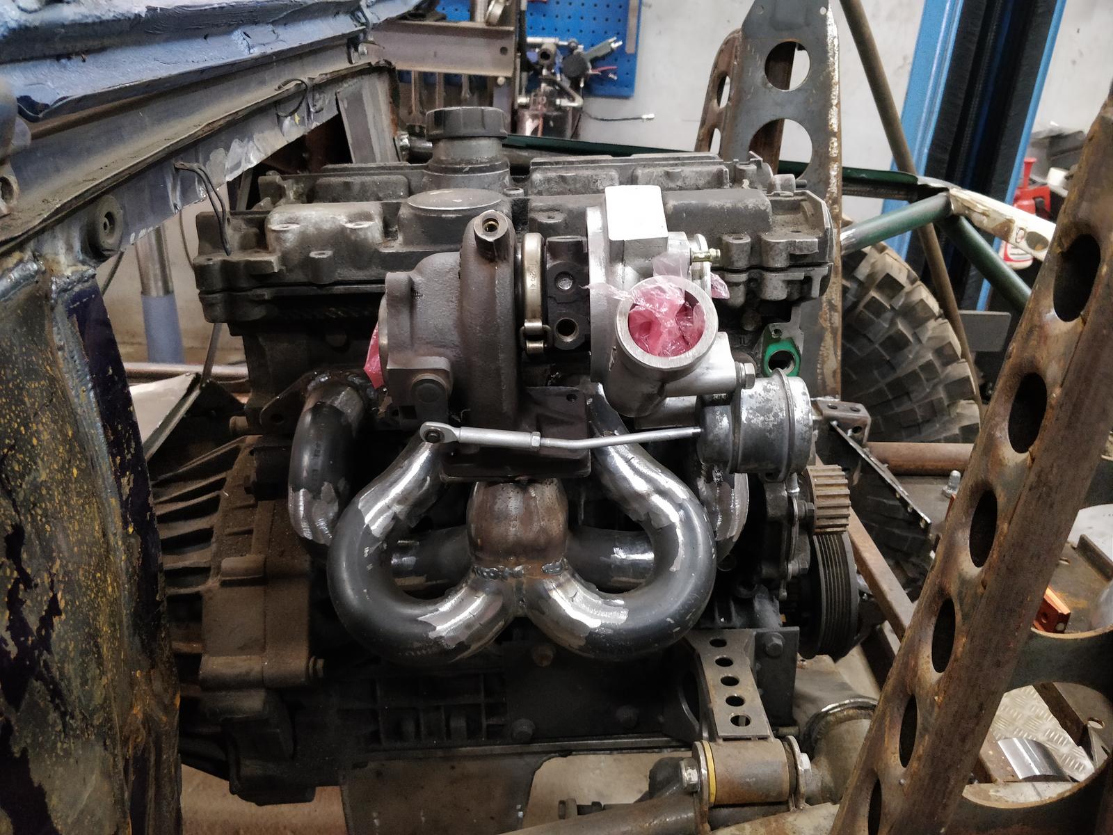 Toinen moottori saatu takasin paikalleen. Ruotsista tuli t5 volvon imusarja jonka sai pienellä muokkauksella paikalleen. Myös takalattioita sai hieman tehtyä.