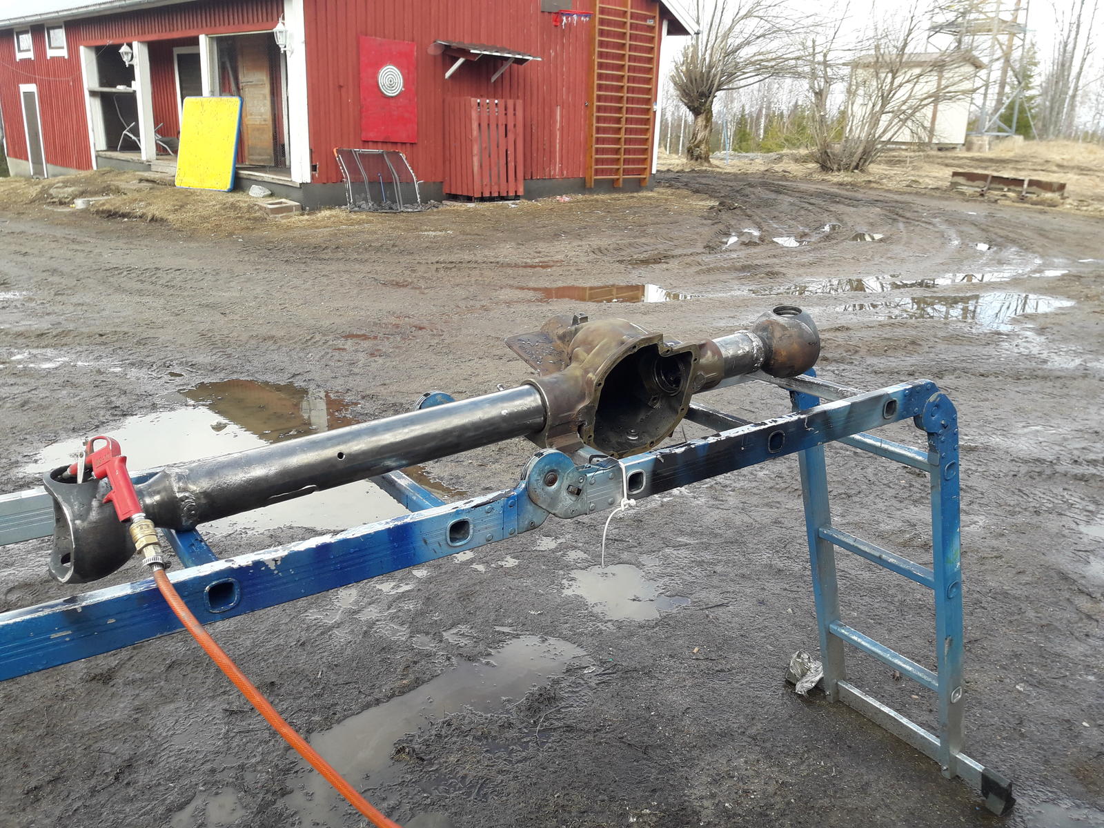 auton laitoin liikennekäytöstä pois ja irroitin taka akselin.