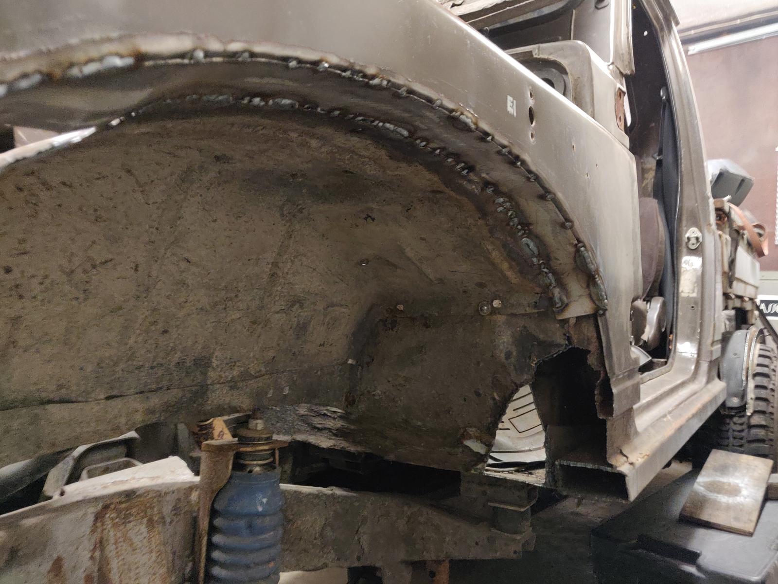 Viikonloppu menikin oikein rattoisasti tämän kanssa. Tuo liian pitkälle tuleva helmapalkki ja lokasuojissa kummittelevat terävät reunat nyt ei vaan sovi tähän, joten jotain oli tehtävä.