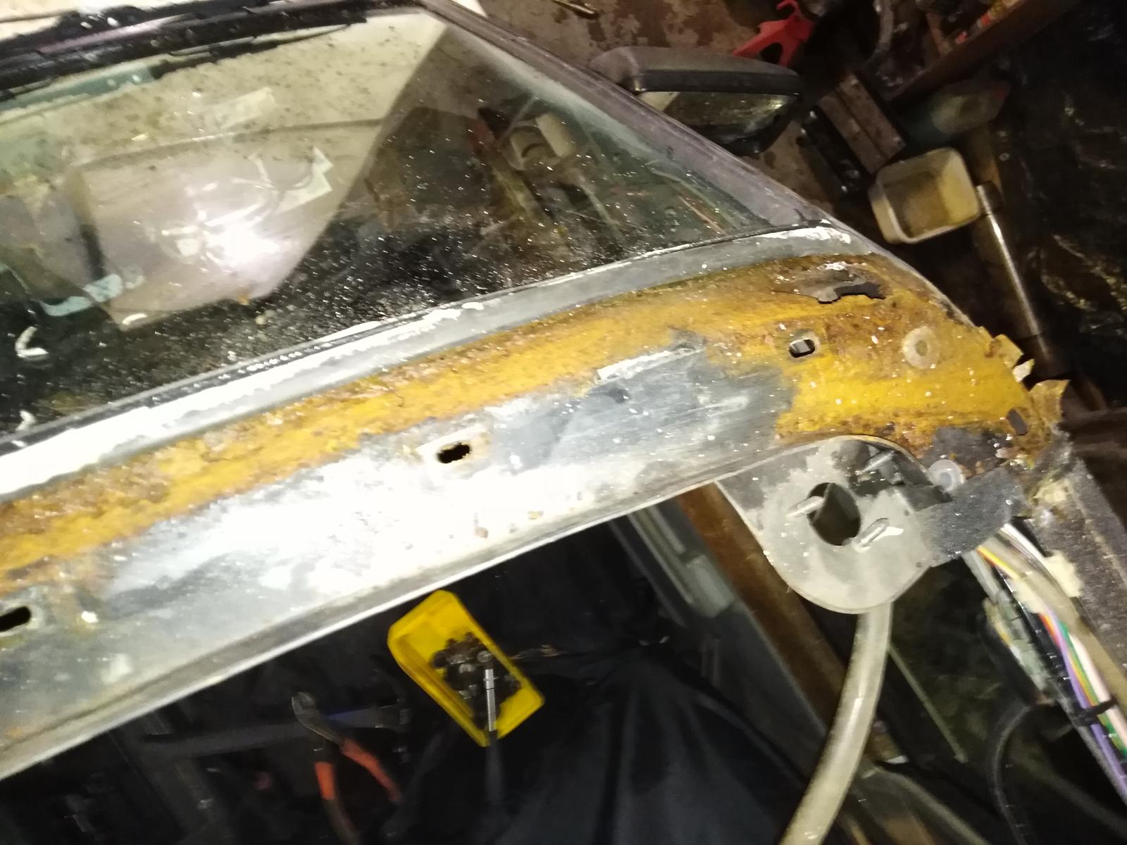 En tiedä auttaako, tossa on kuva -90 Rangen yläkarmista. Selällään laattialla, oikea A-pilari pystyssä. Vaihdoin -87 autosta karmin tohon -90 vehkeeseen, näissäkin oli A-pilarin sisäsyrjä jo erilainen.