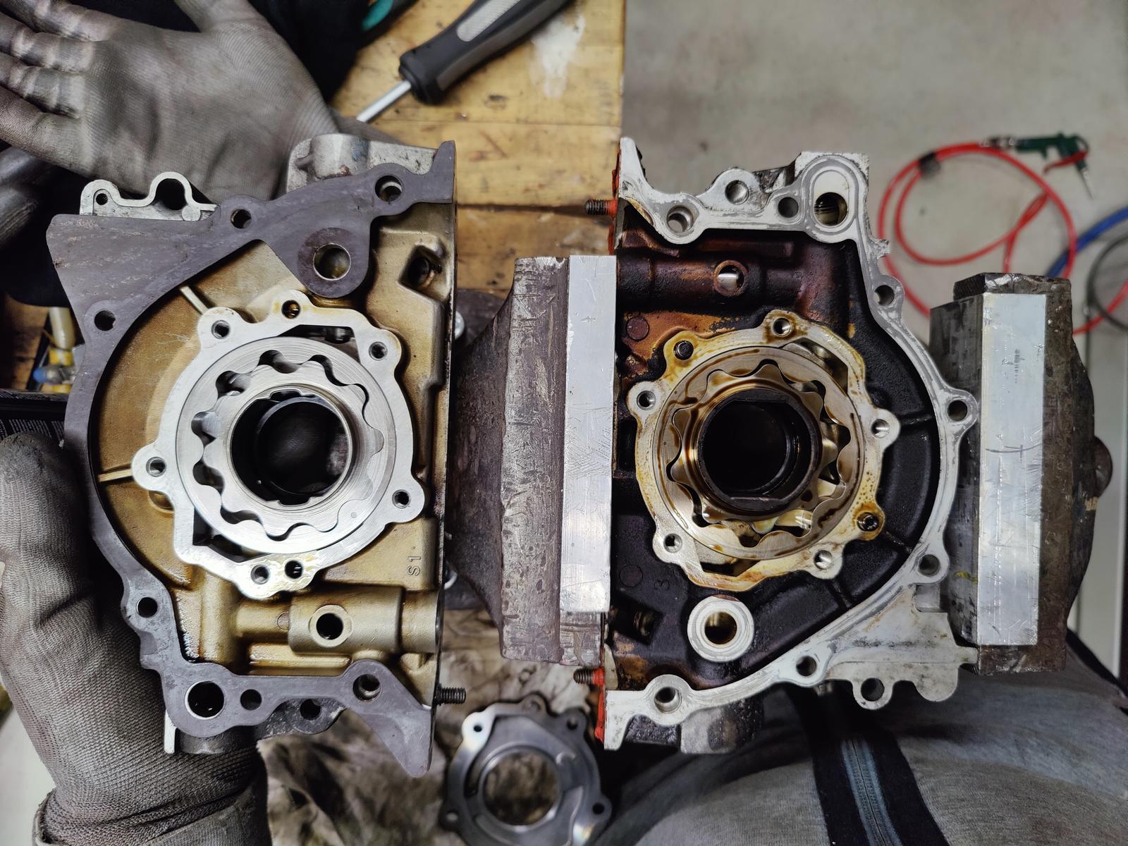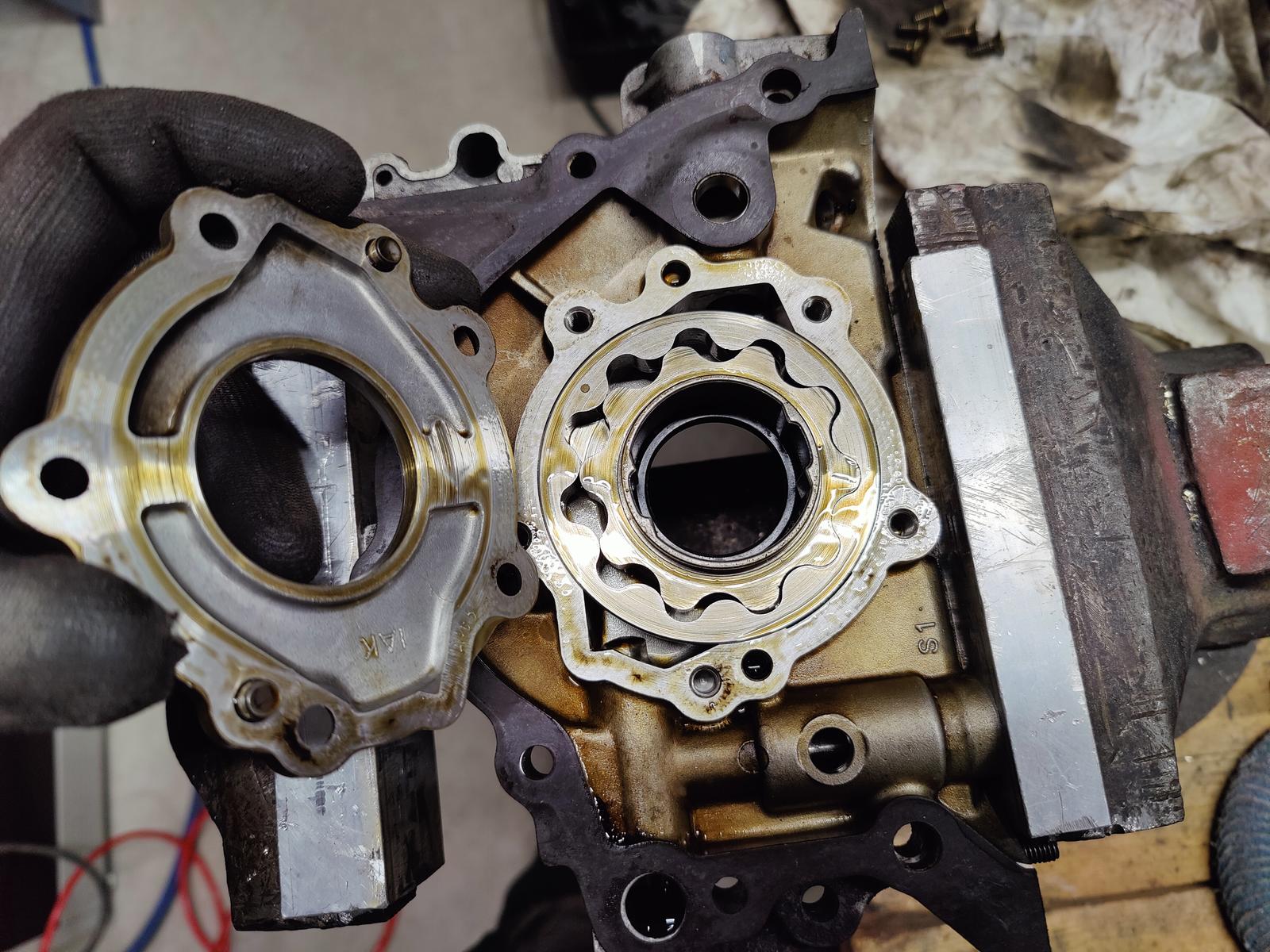 Öljypohjan kun olin ottanut irti, niin katse lukittui öljypumppuun, sen sisälle pitää kurkistaa. Tässä on ollut semmosta ominaisuutta, että kuuman öljyn (niinku peruskaasuttelun jälkeen +100C) tyhjäkäynnillä öljynpaine on lähes olematon. Vähänkään kun antaa kierroksia tai öljy on viileämpää, niin paineiden kanssa ei ongelmaa. Näiden kanssa olisi tullut itku ilman JIS -ruuvaria. Näitäkin oli lentskarimies joskus availlut ja ruuvin kannat oli sen näköiset ![]() Hattu auki ja öljynpaine -asia selvisi heti ![]() Tänne onkin mennyt jotain kikkaretta enempikin ![]() Lihalaatikko -GTi koneen pumpun avasin vertailun vuoksi, siinä aika paljon erinäköinen. En nyt vielä korkannut yläkertaa auki, mutta se on nyt seuraavana listalla. Jos nokka-akselien pukit on ok, niin sit ehjää öljypumppua tilalle ja kovaa ajoa. Ehkä mä samoilla höyryillä katson kampuran ja veivien laakerigapit samalla. Muutenhan tästä tulee konepoka... Kikkareet paljastui olevan lähinnä hitsausroiskeita, joten varmaan käynyt niin, että jostain jäänyt puhdistelusta huolimatta spatteria joka on mennyt öljyn imusihdin läpi