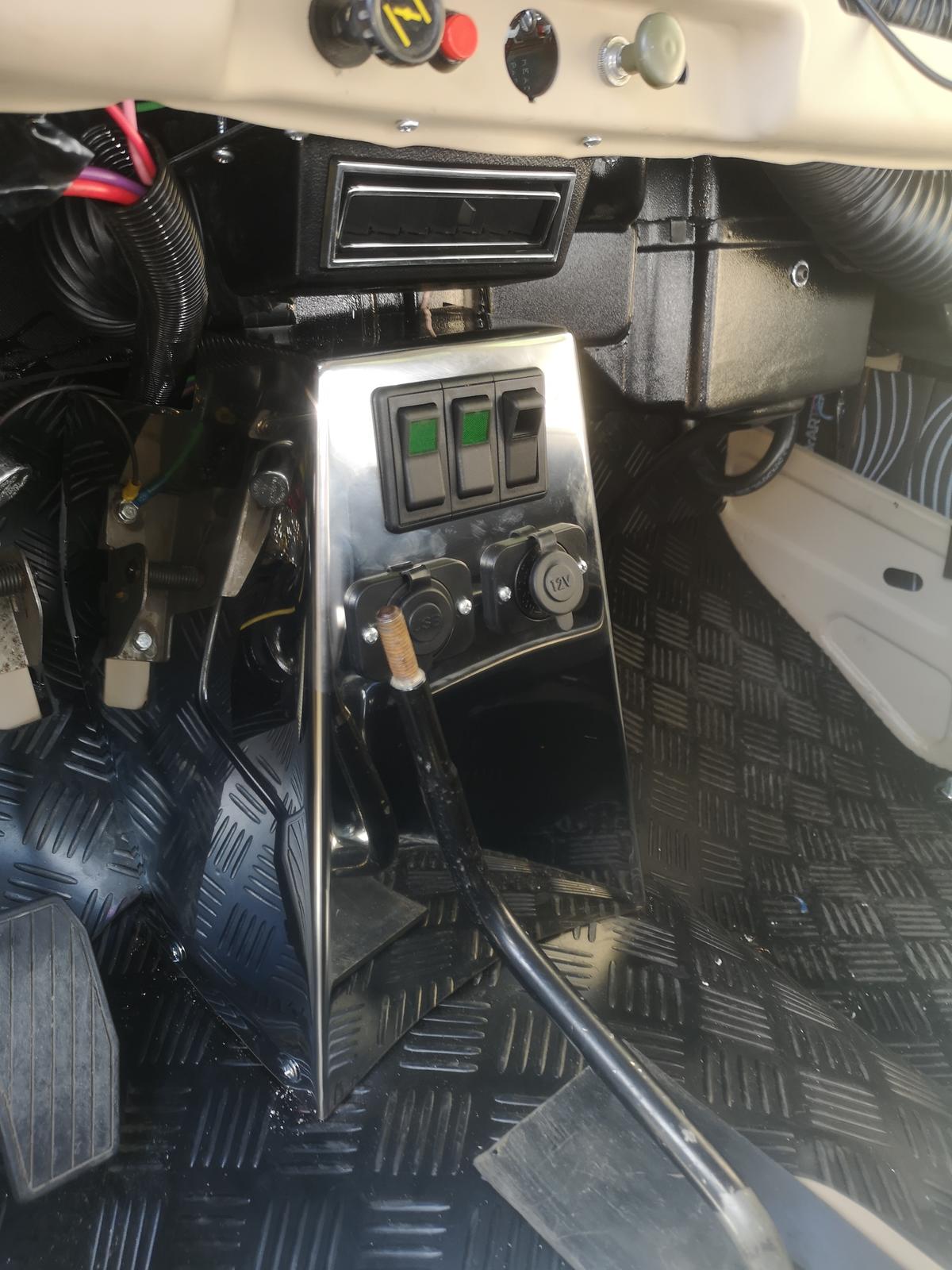 Lukon ohjaus ainoastaan napilla. Saa käytettyä myös 3 vaihteella. Tehtiin semmonen suoja siihen että jos kolmesella ajaa lukko päällä ja sitten painaakin napista loikkarin päälle niin lukko putoo ensin automaattisesti pois.