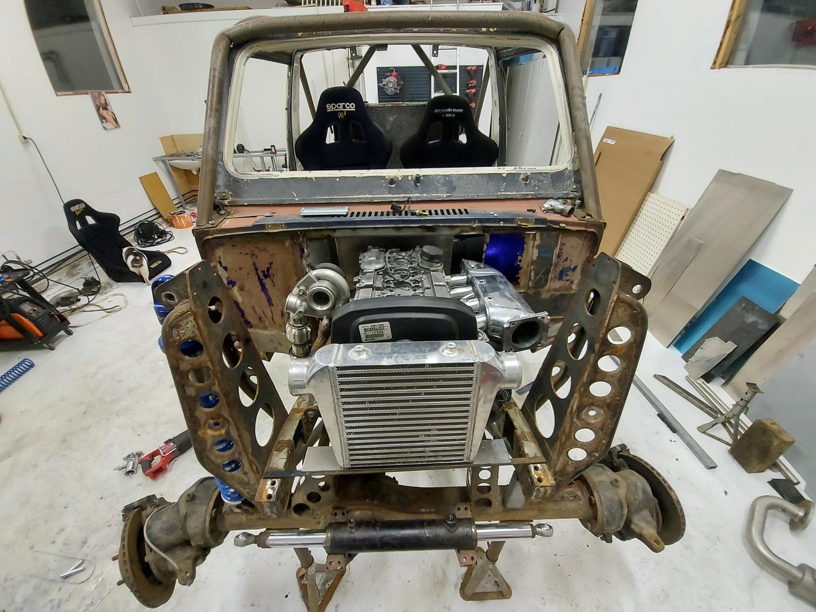 Toinen moottori saatu takasin paikalleen. Ruotsista tuli t5 volvon imusarja jonka sai pienellä muokkauksella paikalleen. Myös takalattioita sai hieman tehtyä.