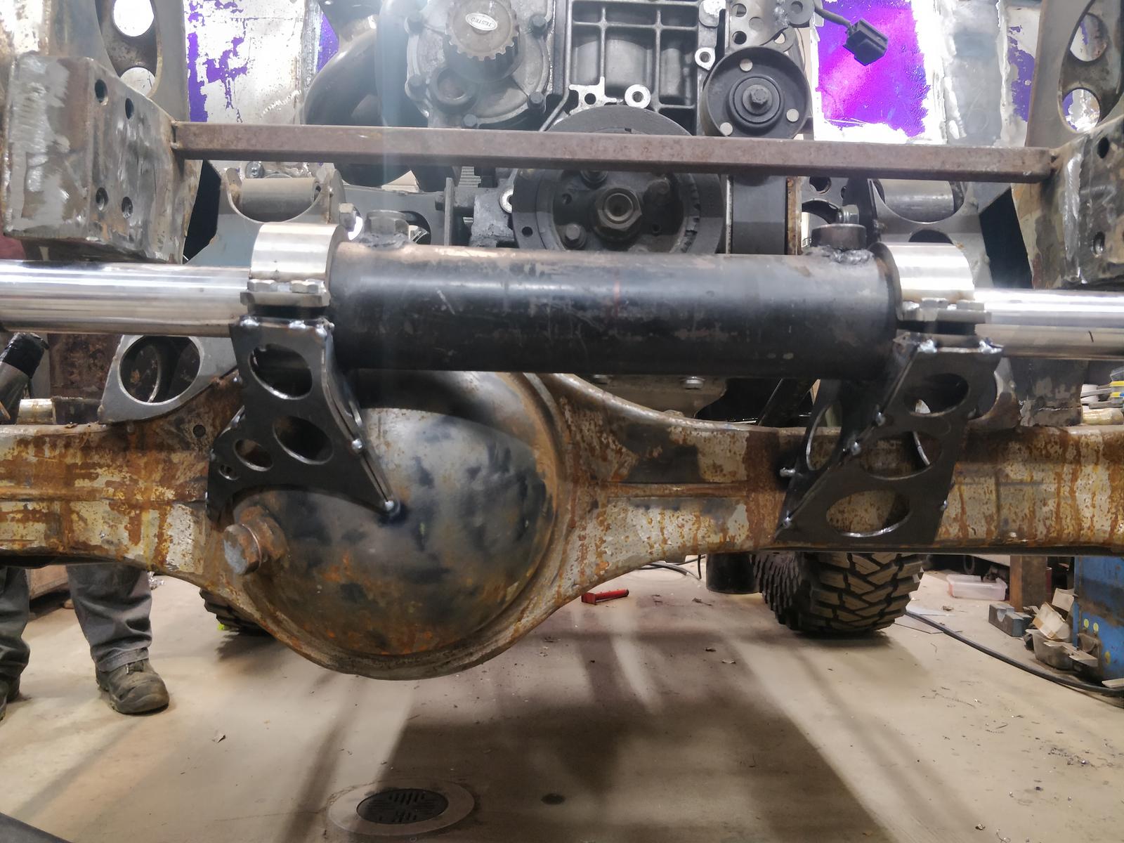 Myös ohjauksen sylinterille tehty korvakkeita akseliin ja pakosarjan hitsailin kasaan.