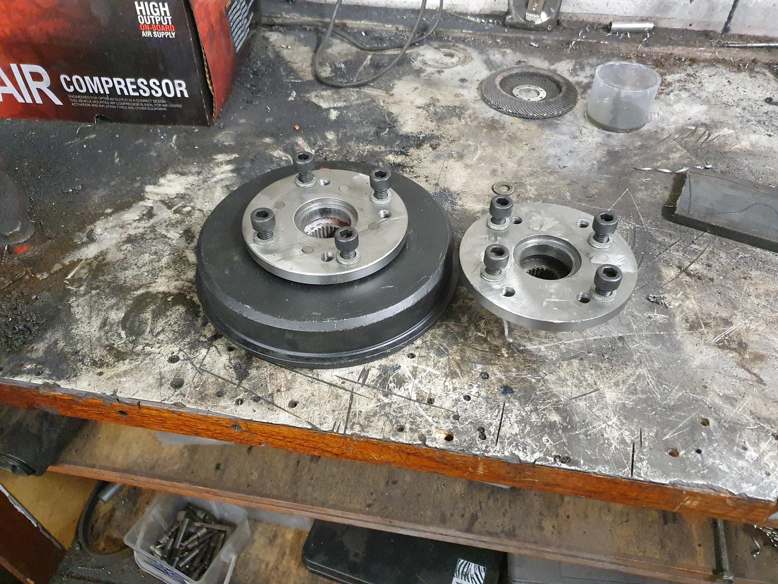 Vielä pitäisi saada muutettua TPS signaali PWM muotoon niin saisi varmaan tuon ohjaimen toimimaan oikein. Ja se on sitte temppu se, varmaankin voipi tuolla megalla saaha sen tehtyä. Sitte tuli vaiheltua keskiöt vanteisiin. Ja jarrun kiinnikkeet taakse. Jarruiksi eteen LN110 hilun rekkulat ja taakse LN65sen etujarrut. Vanteissa oli Volvo C303sen jako ja et, joten joutu vaihtaan keskiöt. Keskiöt peräisin LN65sen vakio vanteista, ET:ksi tuli jotain -44n pintaan Niin ja tulihan sitä veivattua kardaanien adapteritki jakiksen päähän. Käytännössä alkaa oleen kohta alle laittoa vaille. Siihen tarvii vielä latipenkit, jarruputket, iskarin kiinnikkeet ja sitte kardaanit. Viimeksi muokannut antti_boy : 15.02.2021 08:37 |