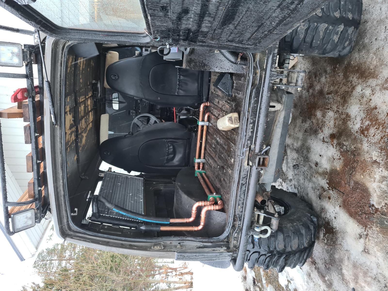 Elikkä ln65 hilun etuakseli 4.56 välit ja paineilmalukko. Histeer ohjauspalikat Taakse LJ70 taka-akseli 4.56 välit ja paineilmalukko, levyjarrut. Kardaaneiksi tulee näillä näkymin toyotan tuplanivelillä varustetut mallit. Aihioita tais olla joku 6 kappaletta hyllyssä. Automaattilaatikko vaatii hieman perehtymistä, vaikuttaisi että 2. solenoidi ei pelaa. Alusta jää tuollaiseksi mutta varmaankin SOA:lla mennään ja uretaanipuslat tulee kun vanhat alkaa olla loppu. Moottoriin sitten saattaa olla alla olevissa kuvissa pientä päivitystä, jotta kulku ei tyssää nuilla boggereilla. Jakolaatikossa 6.5:1 välitykset ollut jo minulla ekassa katastuksessa pari vuotta sitten. Levyjarrut edessä vitaran jäähytetyt ja takana sj:n vakiot Jarrutehostimena joku toyotan mallia sopivasti löyty. Ohjaustehostin myös rakenneltu jostain toyotan osasta vakion tilalle sopiva malli. Raajärvellä pienen snorklauksen jäljiltä autoa vaivasi kohtuu pitkään mystinen vika joka osottautui bensapaineen heittelyksi, korjattiin tilanne vaihtamalla balenon vakio pumppu boschin 044seen tanki ulkopuolisella asennuksella ja tankin sisälle arctic catin ufot. Käyntihäiriö korjaantui. Jäipähän vian hausta repullinen kokemusta ja paljon vara-antureita, puolia, yms. Mysteeriksi vika jäikin sillä, tankissa kokeiltiin kahta eri balenon pumppua ja suodattimetkin vaihdettiin kertaalleen. Tämä vika siis alkoi raajärvellä ku käytiin ajamassa, paluumatka oli aika eksoottinen noin 300km matkaan meni aikaa reilut 11 tuntia, välille oli satanu sitte lunta paikotelleen 40cm. Auto kulki vain pikku puolen ykkösellä tyhjäkäynnillä etteenpäin, tämä siis ennen automaattia. Joten matka oli aika pirun pitkä ja turhankin jännittävä, kun mutikoista haettiin sitä m+s merkinnän merkitystä jäisellä e4sella. Viasta huolimatta välillä pääsi jopa 80kmh vauhtiin. Katsellaampas miten se seuraava safari sitten menee