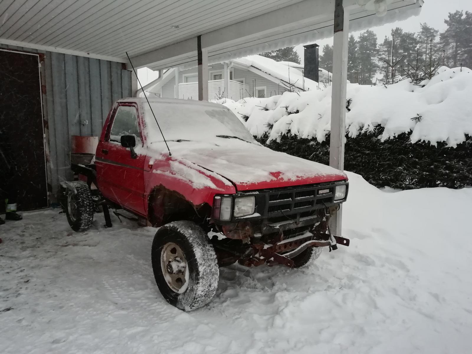 Rippi Hilux 84Menin sijoittamaan rippirahani lyhy hyttiseen 84 in 65 hiluxiin. Tosijaan tämmösen ostin unelmoinut joskus lyhy hyttisestä hiluxista jäykällä akselilla. Tuli sopivasti kohalle ja sopu hintaan. Osta toyota niin opit hitsaa tavalla eteen päin. Antakaa te palstan ihanat ihmiset ideoita