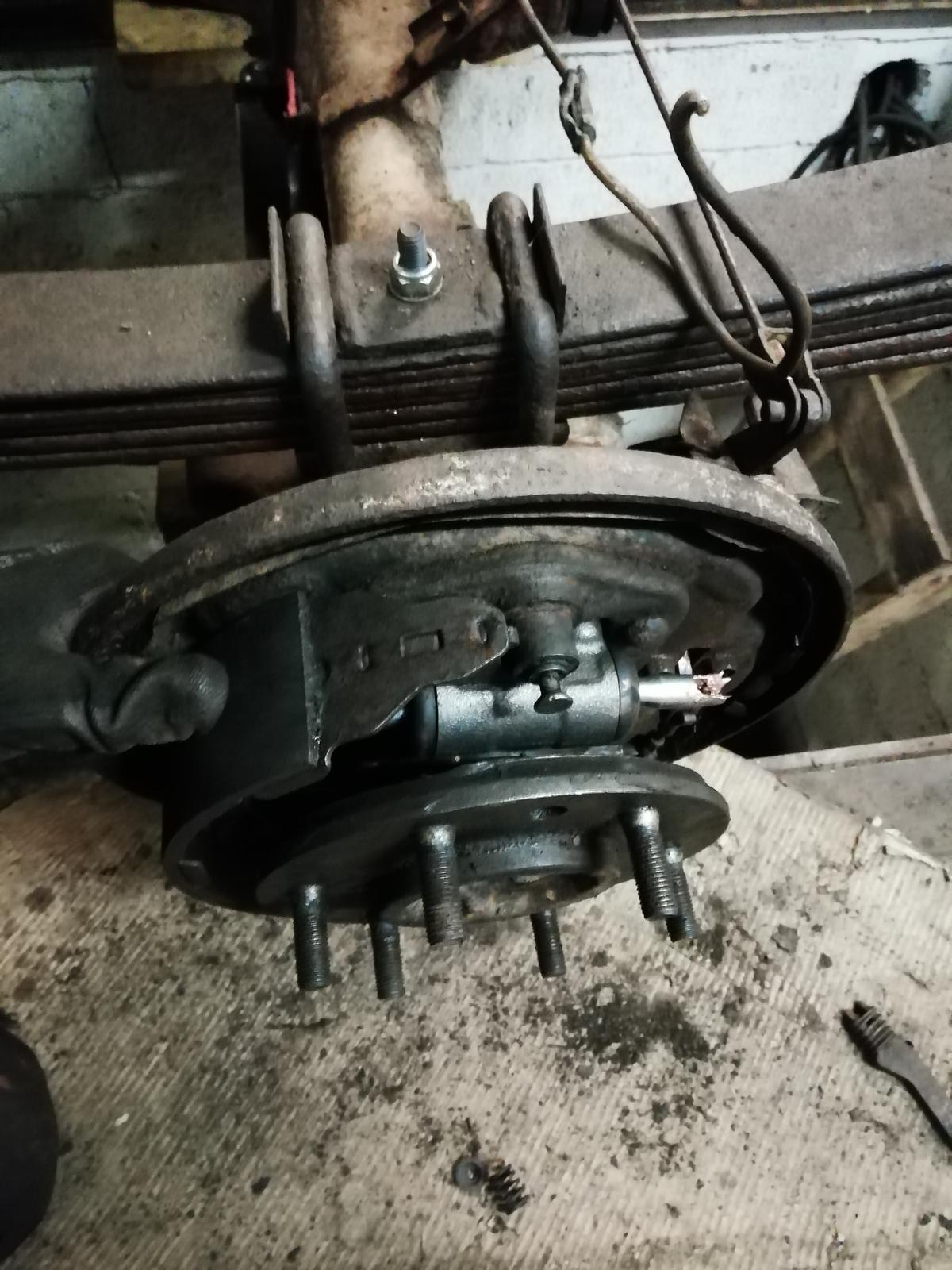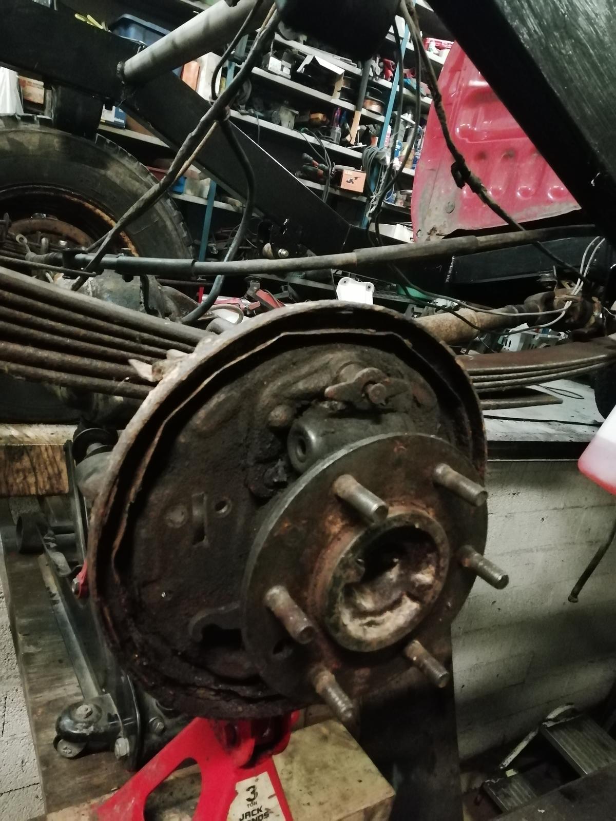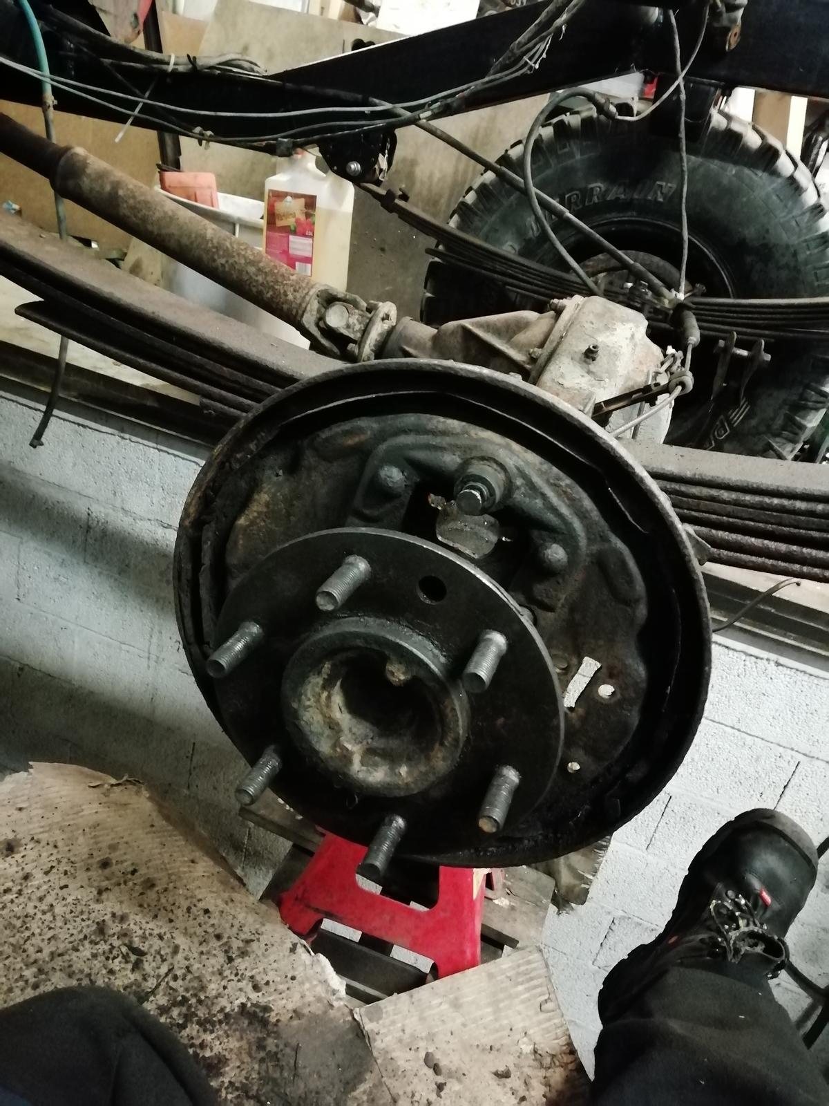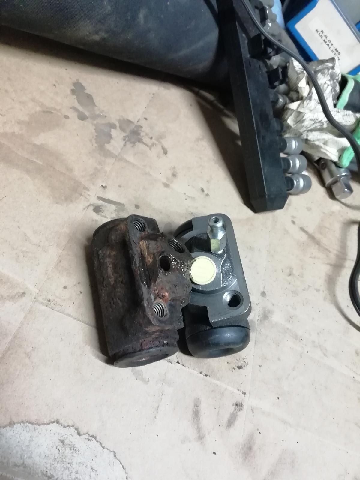 Taka jarrut olivat kovin huonossa kunnossa oikee taka jarru oli täysin mykkä ja ruosteessa. Vasen oli puhtaampi johtuen taka akselin stefan vuotaessa peräöljyä rumpuun asti. Uudet sylinterit tuli molemmille puolille. Auton alle tuli myös pyöräytettyä vanhan mutikat. Pintaa ei ole paljoakaan mutta jos nyt kevyeen offailuun sopis aika näyttääpi. Ja kyllä jos kuvista tarkkaan katsoo tankkina häärääpi vanha mehutiiviste törppö Tekniikka on hyvinkin toimiva ja auto liikkuu. Pysähtymisestä ei vielä tiedä mitään vielä etu jarrut ovat täysin mykät. varaosa lista vain kasvaa. Etukardaanin ristikki on myös mennyt särki. |
