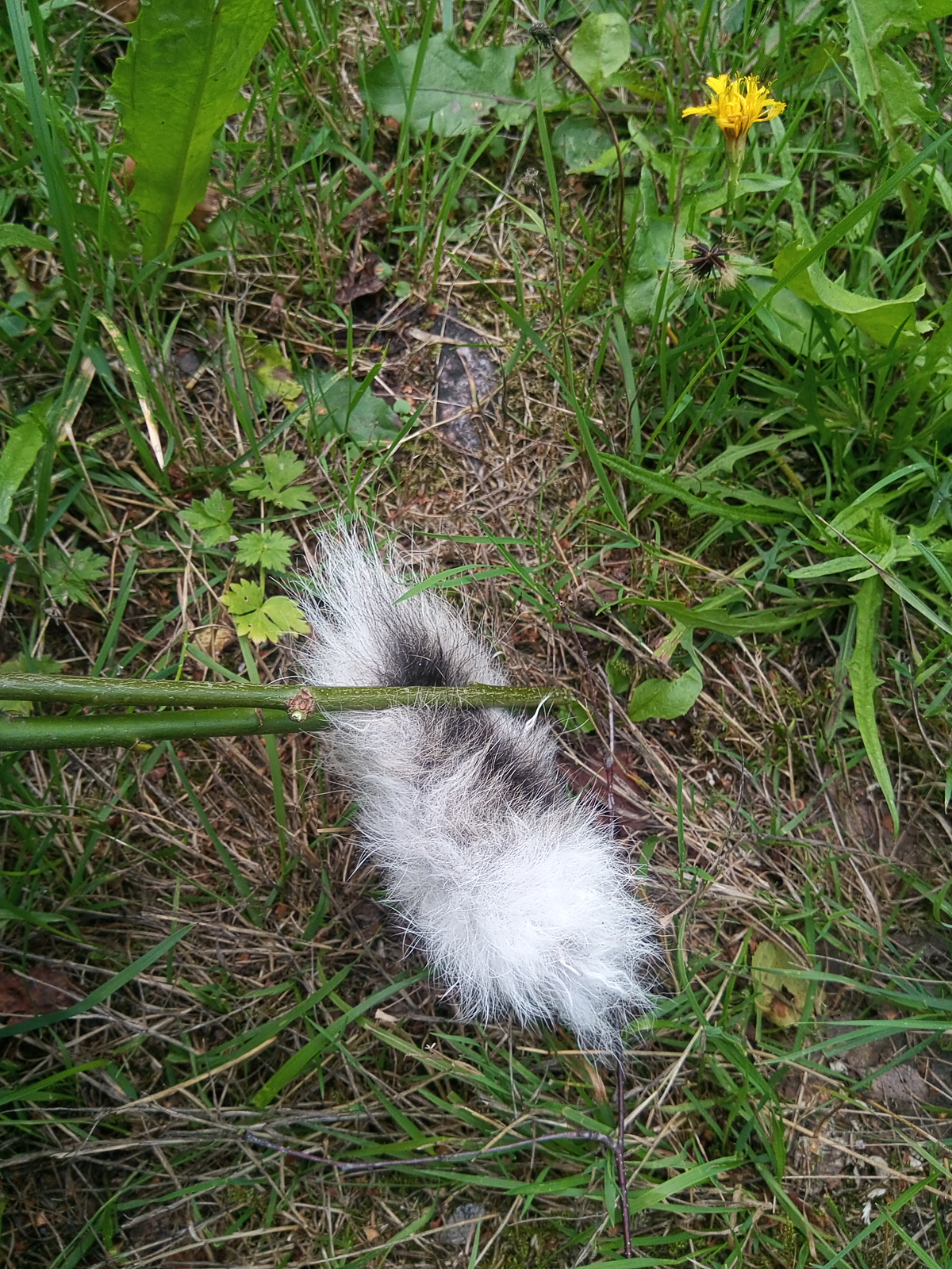 Tiensuussa oli tollanen, ilmeisestikin jonkun elukan häntä, todennäköisesti ottanut senverran yhteen auton kanssa tuossa maantiellä, että nyt on hännätön otus jossain.