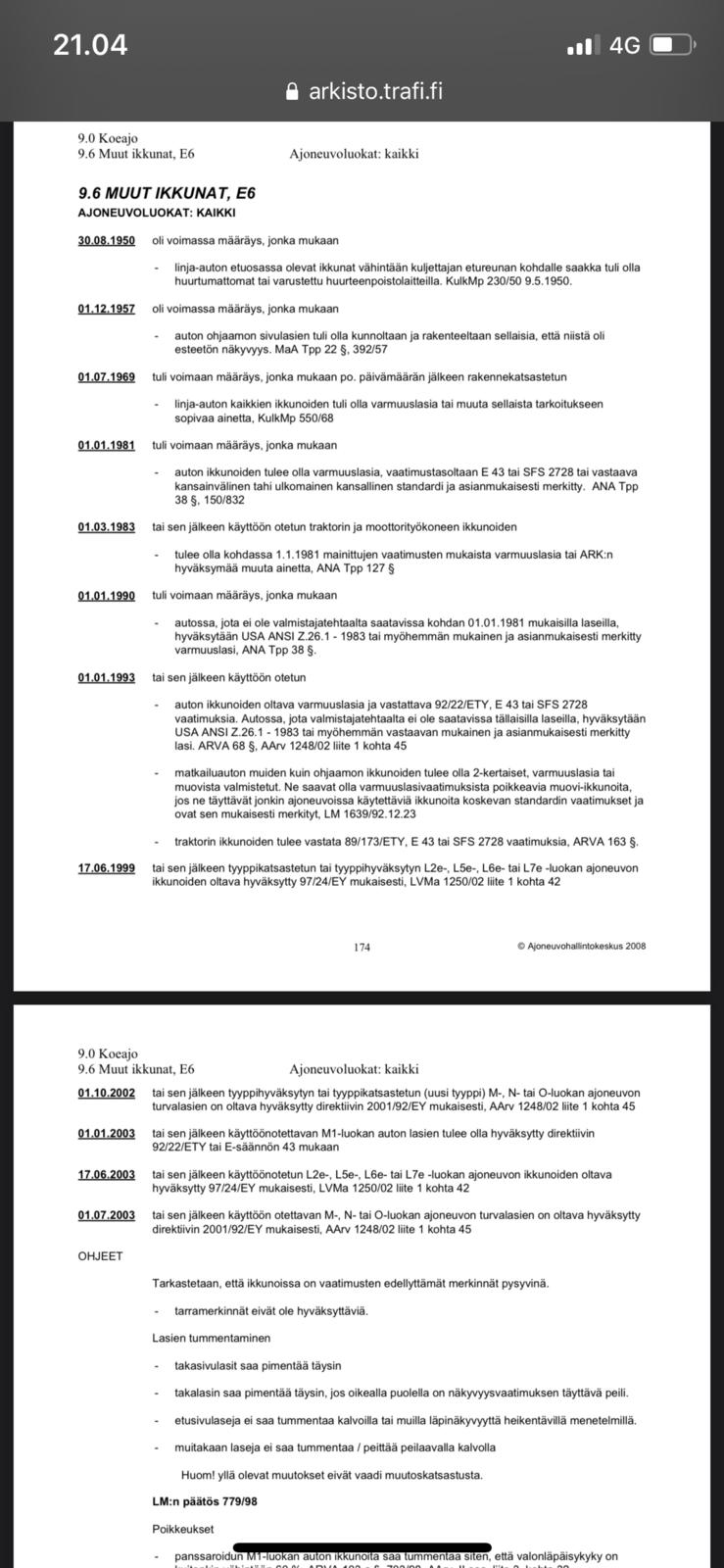 Eipä nuuo määräykset katsastusmiestä näköjään kiinnnosta, just oli yksi ZJ-Grand Cherokee jossa takaluukun lasi oli korvattu ihan muovilevyllä, ilman mitään merkintöjä, leimattu sillä ainakin kolme kertaa...