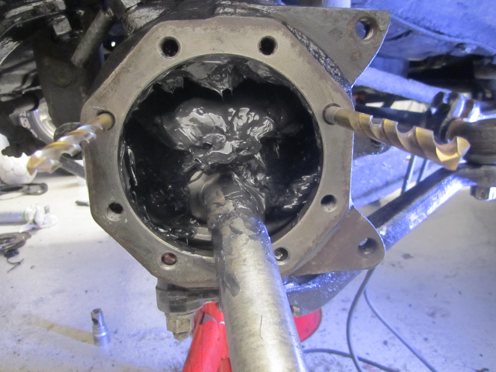 Vetari (oik) ulos. Tarkemmin katsottaessa, Superstefan takana oli toinenkin stefa, tavallinen (!?). Edellinen korjaaja oli työntänyt samaan reikään 2 x stefat, vaikka todellinen vika oli vetarissa = urat !! Miksi hän ei ostanut uutta vetaria, Toyotan orkkisvetari vain 70dollaria+ship Dubaista. Kaikki Toyota varaosat tulivat nopeasti Partsouq.com:sta ja Superstefat (n.20e/kpl) Laakerinetti.fi, jonka palvelu oli todella asiallista! Raidetangon mutterin sokka tietysti katkesi. Pyöritin sormea pallon ylä- ja alalaakerikehän pinnalla, sormeen tuntui selvästi pystyuria. Onneksi ostin myös laakerit. Bronssihelaa ei tarvinnut vaihtaa, otin mitat, samat mitat kuin uudessa ! Vanha vetari irtosi kun pari kertaa pudotti vetarin pösön peltivanteen reiästä sisään! Vetarissa oli tosiaankin urat, uusi Toyotavetari putkeen. Samalla kannattaa ostaa uusi sokka (vetarin ja nivelen välissä), sillä tod.näk vanha katkeaa kuten minulla. Sekä pyörän laakerien lukituslevyt. Ja tietysti vaseliinit vetarin ja pallon sisään. Toiselle puolelle uusi Superstefa, pallontiivisteet, vetari kunnossa. Hyvä idea kootessa käyttää paria poranterää ohjureina. Palikat kasaan ja baanalle ![]() Lisäys: vaihdoin etuperän huohotusletkun päässä olevan väsyneen mikä sen nimi onkaan..venttiilin.