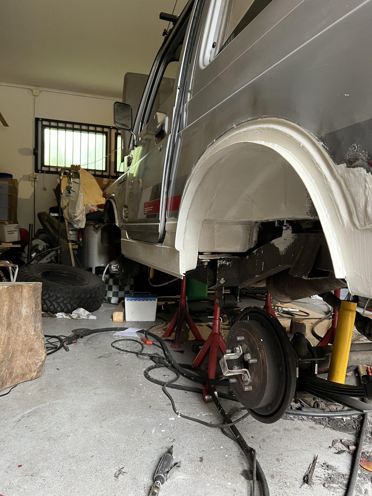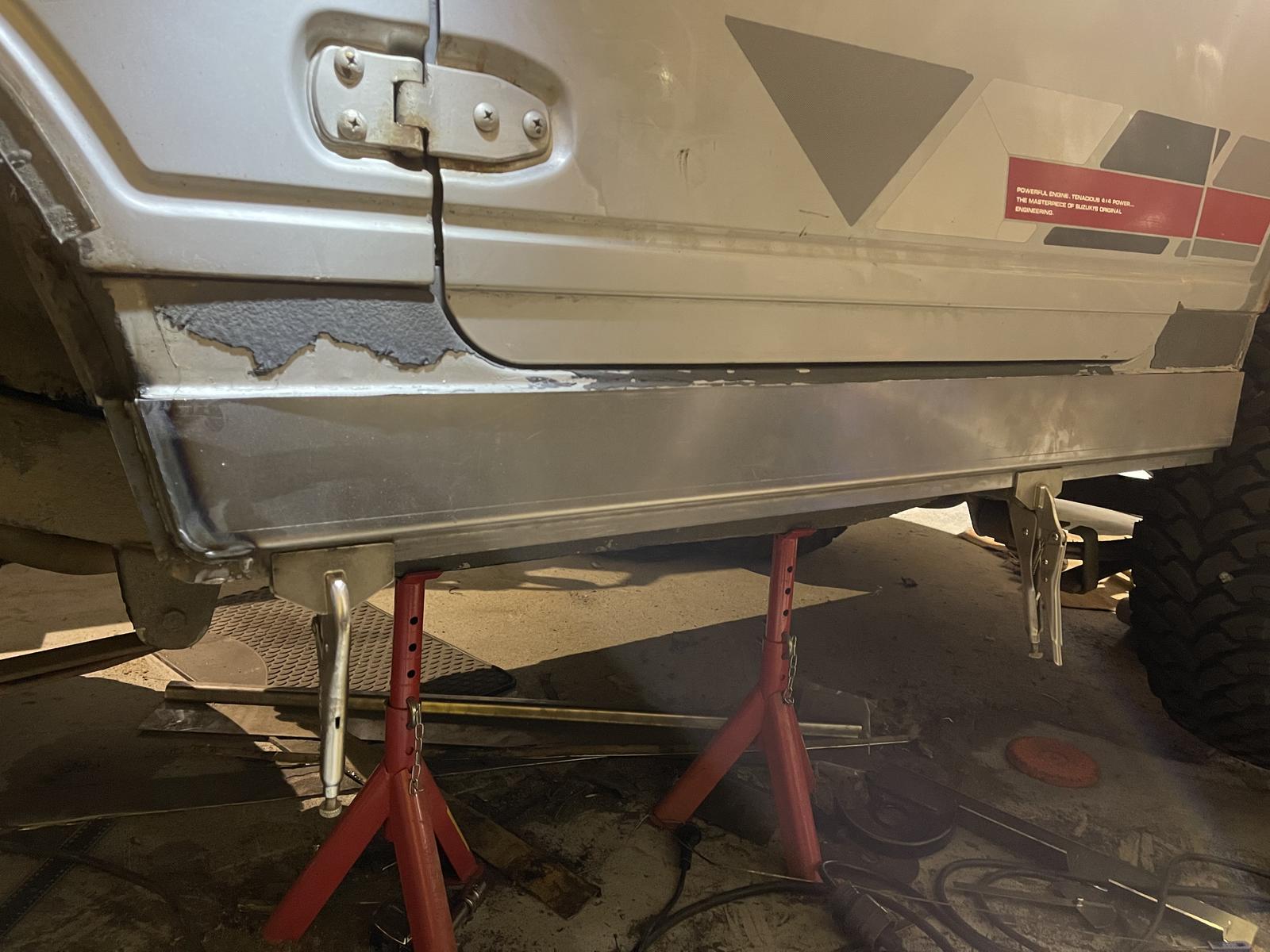 Kevään jälkeen oli tallissa hiljaista muutama kuukausi. Tuleva jahtikausi sai vähän vauhtia tekemiseen ja aloin tuossa toissa viikolla tekemään peltihommia loppuun. Suurimmat työt alkaa olemaan tehtynä. Muutamia pikkupaikkoja hitsaa vielä ja sitten ruveta puhaltamaan pohjaa ja maalailla. Taka-akselin joudun käyttämään irti vielä ja ruostereiät paikkailla siitä.