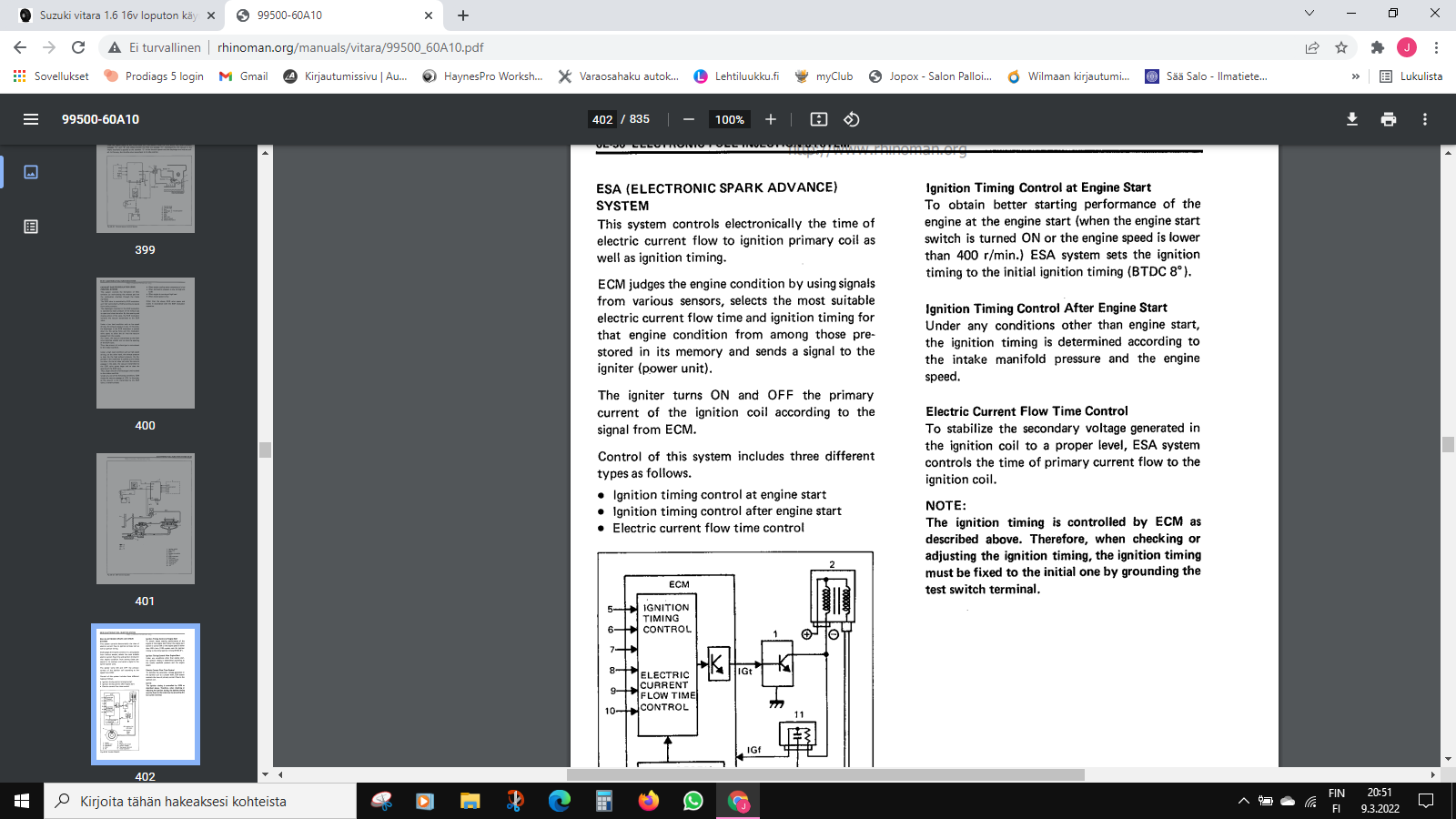 Mittasin että kyllä se ihan maihin menee kun testipistokkeesta vetää hyppyjohon maihin eli johto on ok. Miksei tyhjäkäynnissä tai sytkän ennakossa tapahdu mitään muutosta? Ajoituslamppu näyttää samoja lukemia oli pinni maadoitettu tai ei.