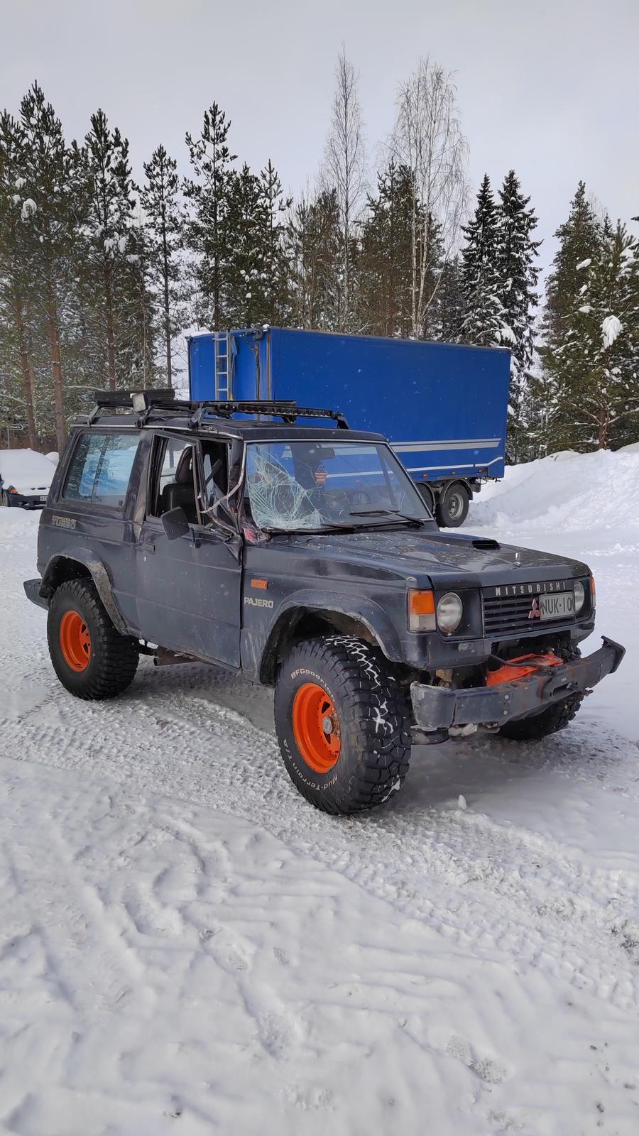 Kylläpäs se taas vastustaa. Pajero pelannut koko talven hienosti ja kilometrejä kertynyt mutta tänään tasi tulla pajerolle viimmenen niitti Liekkö ollu liika tilanne nopeus ja eihän nuot mutiaset liialti toppa näillä keleillä joten sisun lavaan se vauhti sitte loppu ja koppa tuhannen solomuun. Kaiken hyvän lisäksi huomiselle oli sovittu vaihtokaupat nissan pathfinderiin.