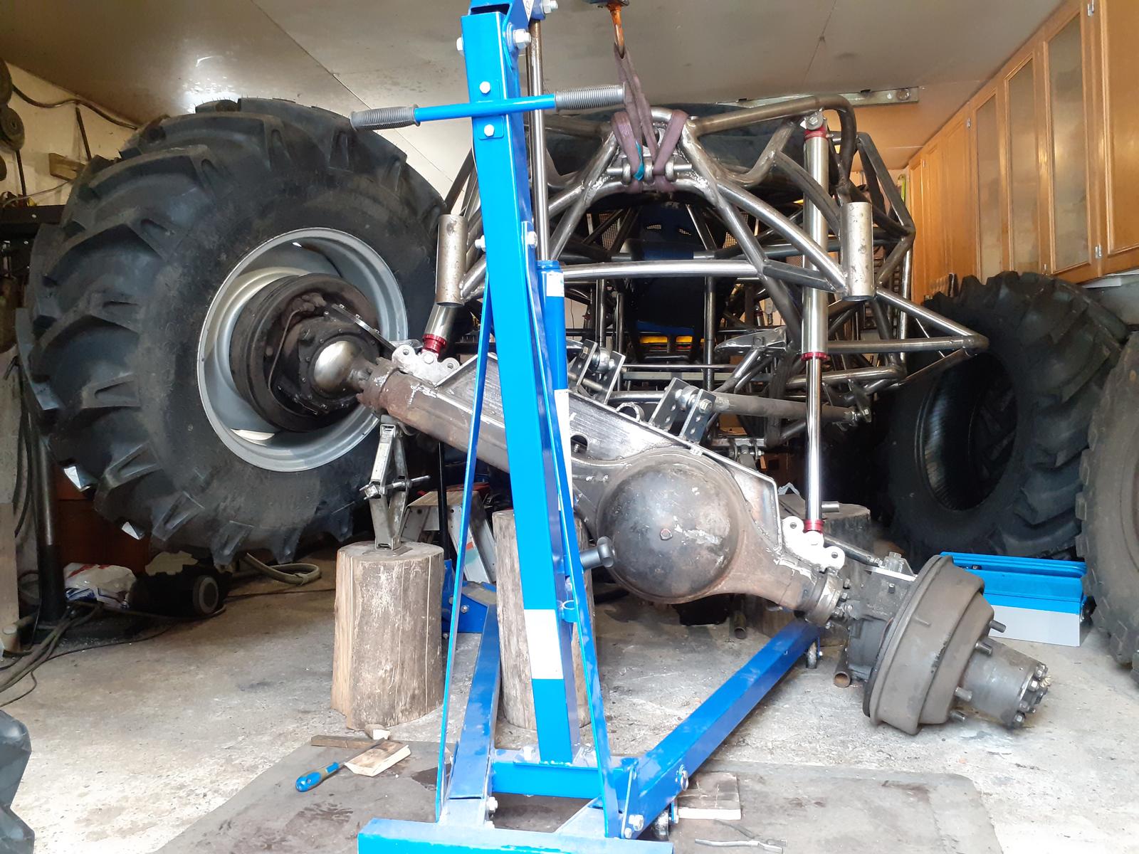 Nonni. Nyt on eturenkaat paikoillaa.. Koitin nostaa tunkilla ajokorkeutee, mut takapää jäi 15cm alemmas ku ottaa kori kattoon kiinni