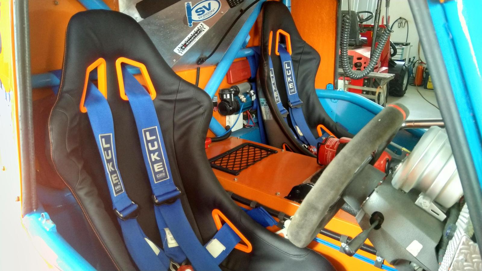 Penkit olivat jo parhaat päivänsä nähneet. Postitin yhdet päälliset verhoilijalle, joka käytti niitä mallina ja teki tilalle uudet. Poistin mädät vaahtomuovit ja korvasin solumuovilla, joka ei ole niin vettä imevä. Mun poika 3D tulosti uudet muovit turvavöiden läpivienteihin. Hyvä tuli, ja hienosti sopii autoon.