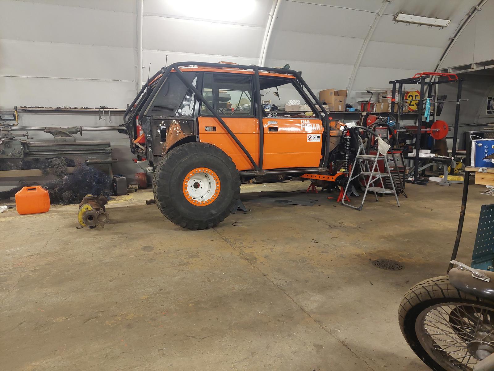 Etupäässä hilppeet kardaania lukuunottamatta paikoillaan,takaa uupuu vielä kardaani kans ja panhard.ja ne jarrut tietysti