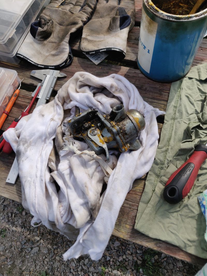 27x2 pultteja ei sitten löytynyt mistään. Kaksi eri pulttikauppaa etsi ympäri eurooppaa. Kierretyökalut ja muttereita sentään löytyi. Jengatapeilla sai putsattua kierteen ja sorvari teki pinnapultin mikä vedettiin reikään kovalla kierrelukitteella. Pinnapultti tehty vanhasta sylinterinvarresta eli pitäisi kestää. Lisäkikka oli tehdä tapin sisään menevä kierre pieneen ylikokoon eli kulumavälykset pois.