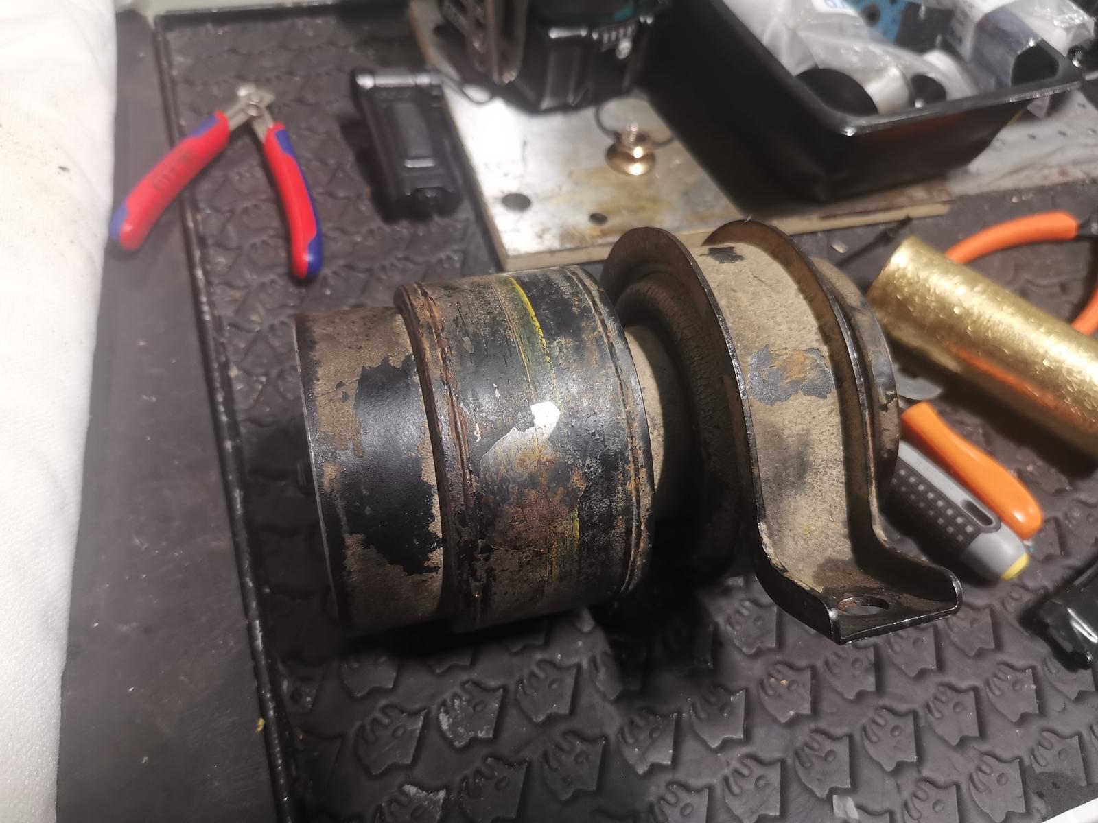 Nyt on irti mut näköjään on hitsattu yhteen pitää koittaa painaa akseli pihalle ja sorvata saumat auki niin näkee mitä se on syöny.