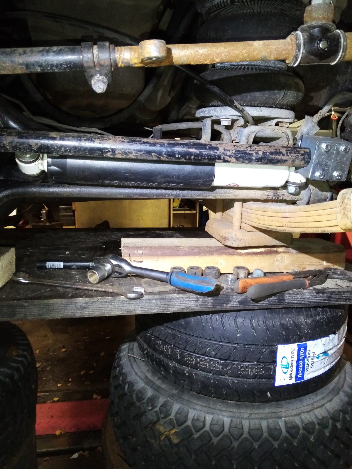 Paljon muutoksia tehty. Uudet riiput, uudet tapit ja kovat puslat. woblauksessa tulee myös pystysuuntainen liike eli uudet kaasuiskarit myös. Ohjausgeometriasta johtuen oikean puolen pomppu liikuttaa ohjausta paljon enemmän kuin vasen. Iso rengas joka tuo pyörää kauemmaksi olka-akselilinjasta aiheuttaa sen että käännettäessä rengas liikkuu enemmän eteen-takse suunnassa. Ei ainakaan auta tuohon ongelmaan. Myös lisääntynyt pyörän paino vaikuttaa vatkausmomenttiin.