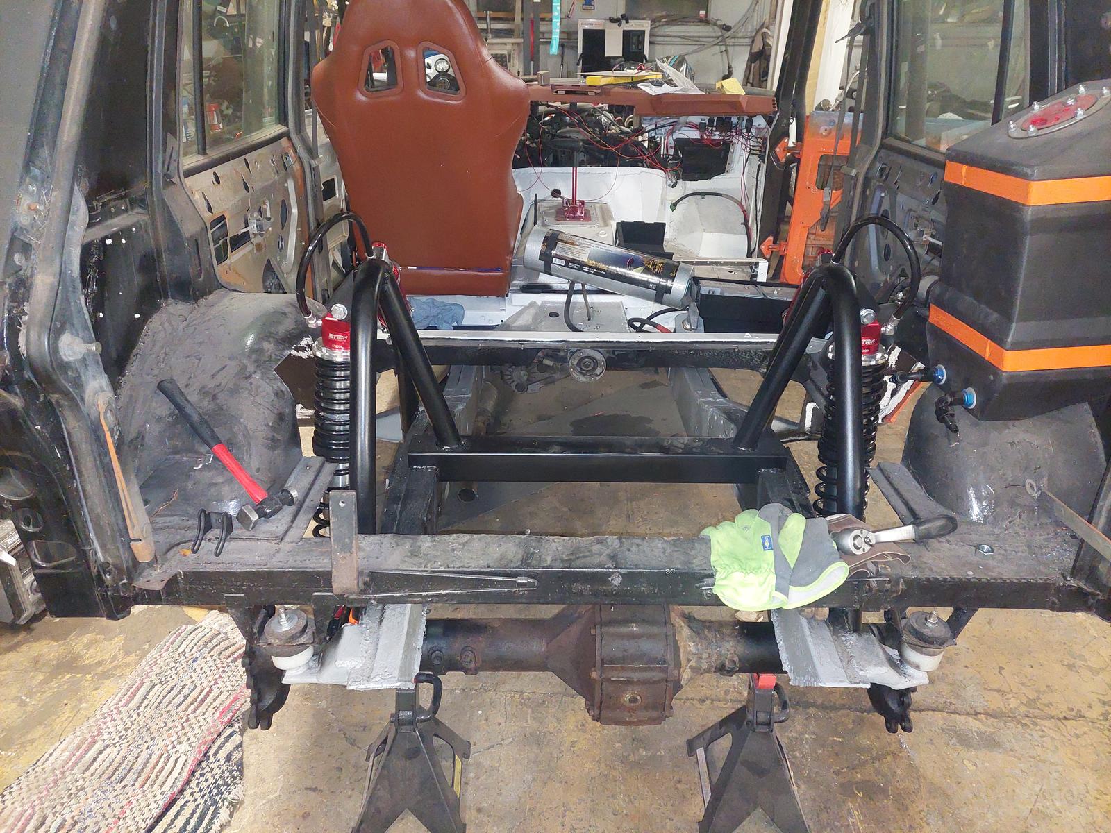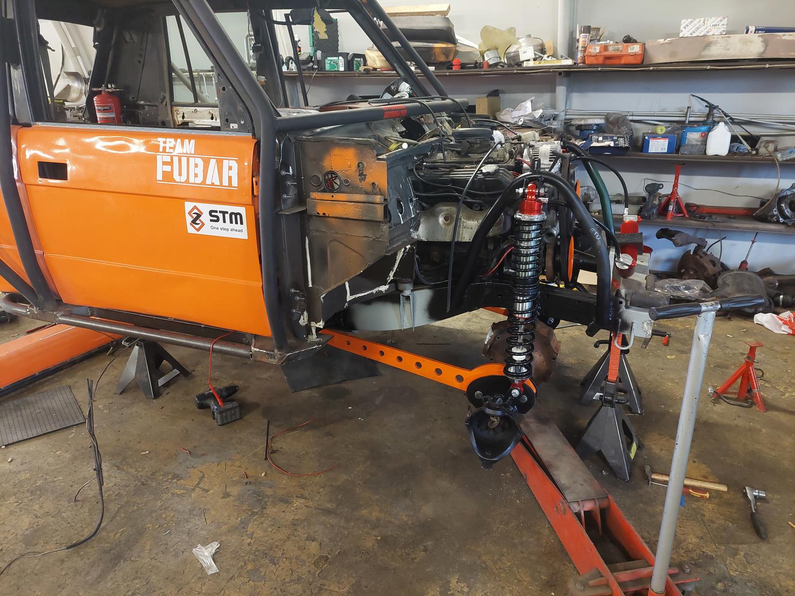Etupäässä hilppeet kardaania lukuunottamatta paikoillaan,takaa uupuu vielä kardaani kans ja panhard.ja ne jarrut tietysti
