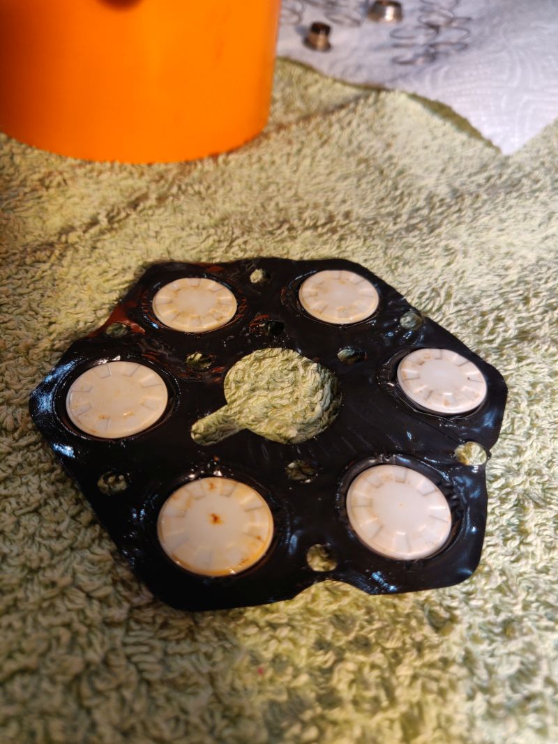 Sen tiesin että noissa on pieniä kanavia, mutta noin pieniä en odottanut näkeväni. Toki pitää ollakin, bensa kun menee aika pienestä rakosesta helposti, ja kun seostakin pitää pystyä varsin tarkkaan säätämään niin sieltä se tarvekin pienille kanaville tulee. Eikä paljoa kärsi roskaa tms väliin kun välykset ja kanavat on pieniä, lisähankaluutena bensan huono kyky voidella...