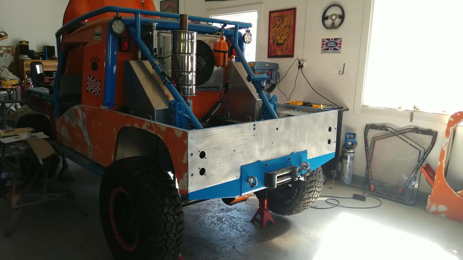 Hankin tuollaisen säädettävän panhardin, saa ton akselin keskelle kun on siirtynyt jousituksen noston seurauksena sivuun. Pitihän se sit sutasta teeman mukaiseen väriin, samalla kun nuo sisälokasuojatkin