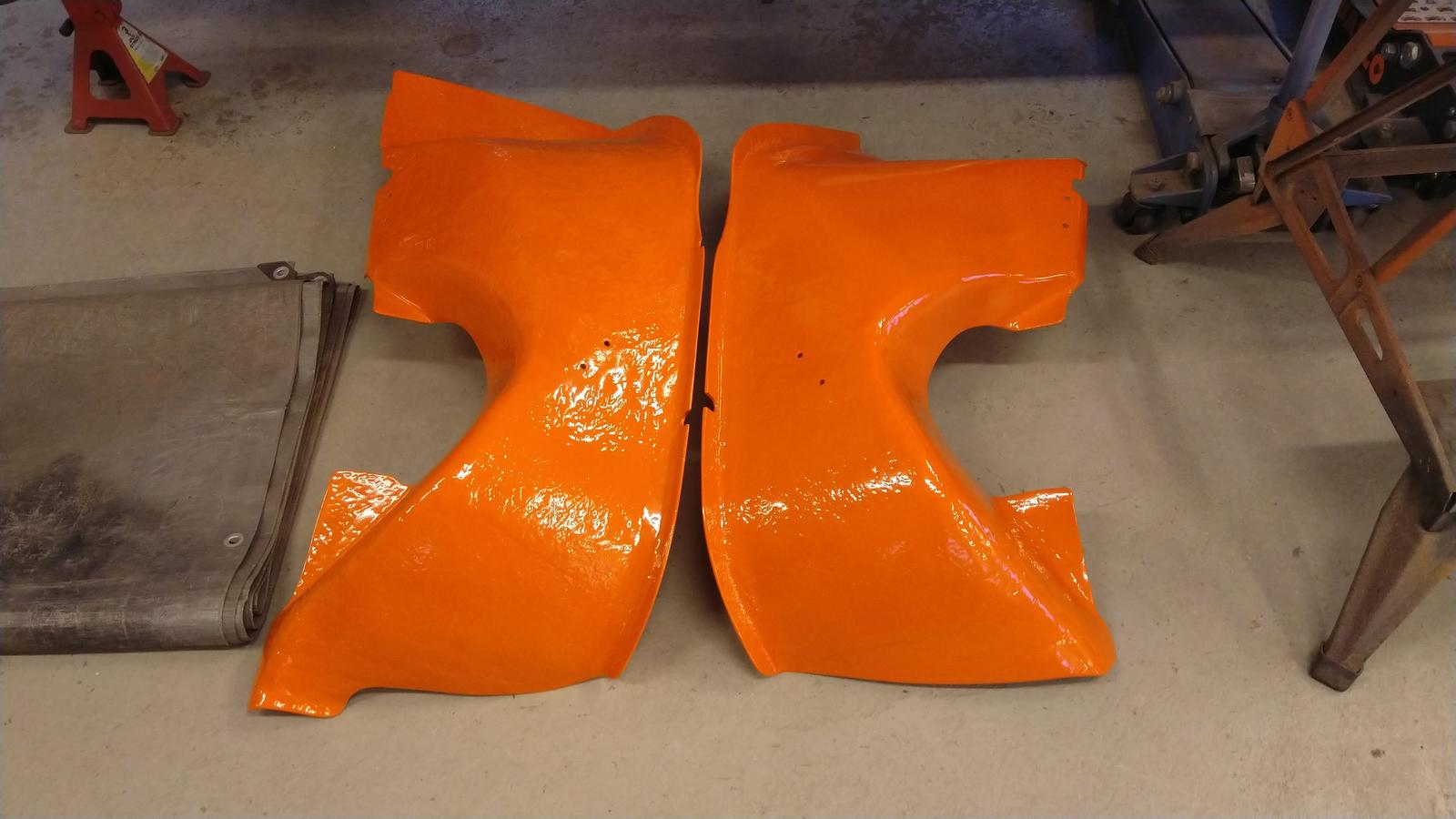 Hankin tuollaisen säädettävän panhardin, saa ton akselin keskelle kun on siirtynyt jousituksen noston seurauksena sivuun. Pitihän se sit sutasta teeman mukaiseen väriin, samalla kun nuo sisälokasuojatkin