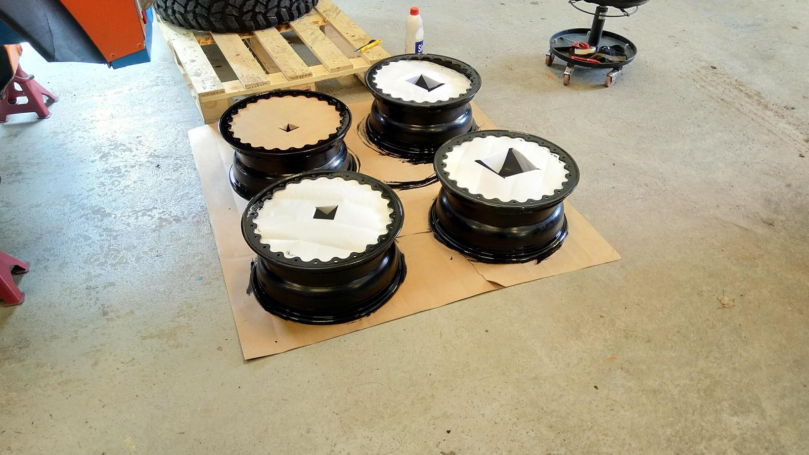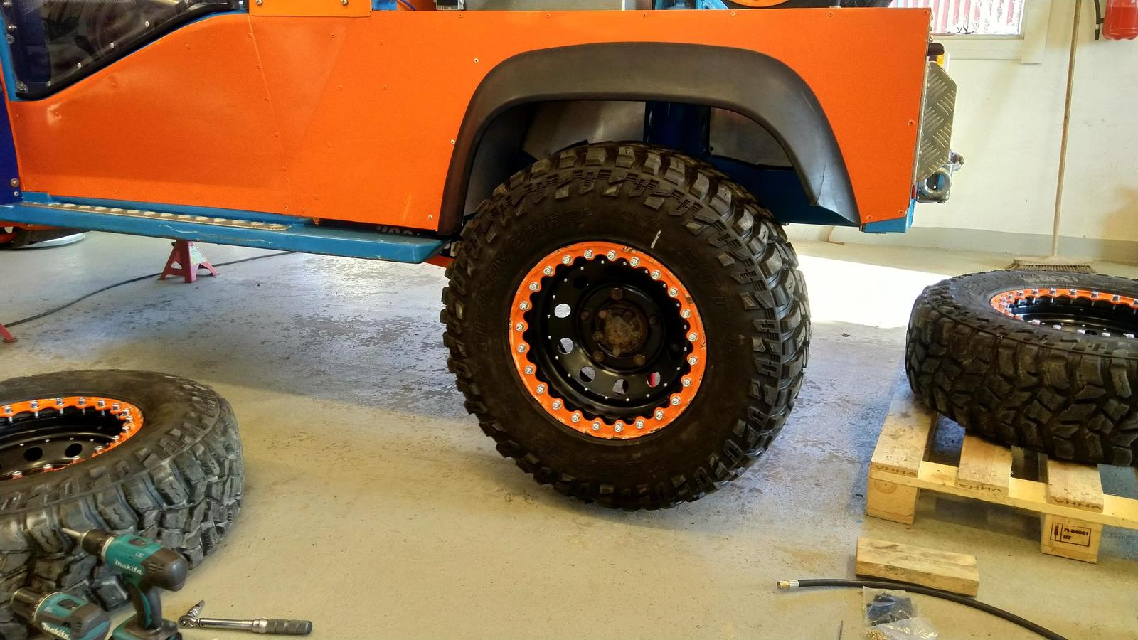 Eipä estänyt renkaan liimaaminen vanteelle vanteen pyörähtämistä renkaan sisällä ja katkaisemasta venttiiliä. Seuraava strategia onkin sitten ottaa beadlockit uudelleen käyttöön. Ruuvien katkeileminen estetään muuttamalla ruuvien koko 10 millisiksi. Poralla vanteen reiät 9 millisiksi ja kierrettä vääntämään. Kehille porailin 10,5 milliset reiät. Seuraavaksi vanteet pyörimään ja laikalla ruosteet pois tiiviste pinnoilta, ja uutta maalia päälle. Vanteiden kasaus uusilla ruuveilla, ensimmäisen kasasin ilman sisärengasta, mutta eihän se ilma siellä pysynyt. Seuraavan kasailinkin sitten sisärenkaan kanssa, toiveissa että toi beadlock kehä estäisi vanteen ylimääräisen liikkeen ja estäisi sen venttiilin katkeamisen. Huomenna tasapainotukseen ja Lauantaina Kulmakorpeen ihmettelemään mistä nyt ratkee