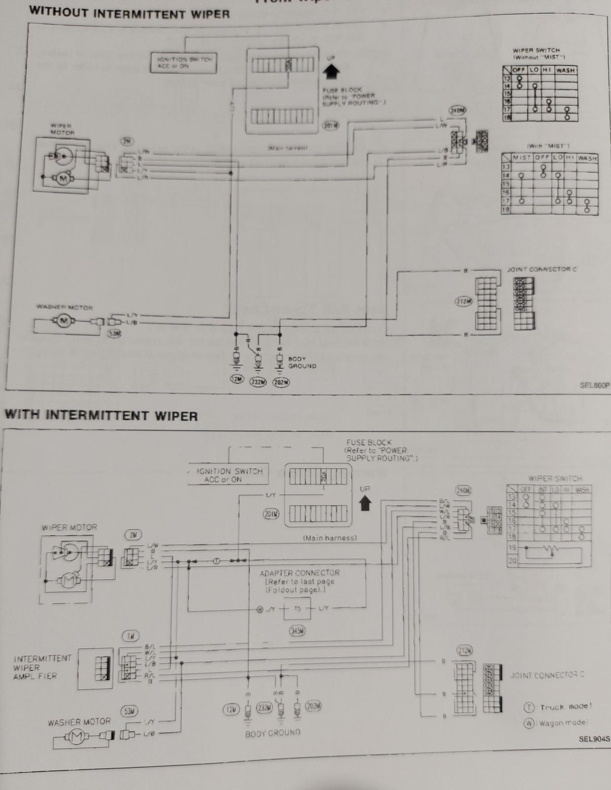 eri merkkisestä autosta pissapojan säiliö-pumppu kombinaation osottauduttua säiliöltään liian korkeaksi todettiin testikonfiguraatiolla, että takalasille pumppaava pumppu toimii! En tarvitse takalasille nestettä koska vararengas ja takateline peittävät näkymän. On siten mahdollista tuunata tuulilasille pumppaamaan esim molemmat samaanaikaan tai toinen varapumppuna vain kytkettäessä primäärin pettäessä ja jokon erillisellä uudella kytkimellä tai vanhallacjos se löytyy (voi olla panelin takana). Säiliö pysyy samana, mikä hyvä koska se on määrämittaan konetilaan suunniteltu muodoltaan ja vaikea löytää tilalle eri merkistä sopivaa - jopa Nissanin eri malleista - Aikaisemmin saatu Nissan yhteensopiva pumppu oli Aussi/UK mallille eli väärälle puolelle konehuonetta eikä käynyt. Tänään saatu kombo eri merkistä oli säiliöltään oli aivan liian korkea eikä muodoltaankaan sinne päin. Varmaan sopivan kokoinen ja muotoinen löytyisi ajan kanssa mutta aikaa ja rahaa todrnnäköusesti palaisi liikaa. Vaikkei tänään keksitty, mistä taakse pumppaavan sais päälle. niin sillä ei ole merkitystä. Syy siihen, ettei takalasille tullut vettä oli ehkä rikkinäinen/tukkeentunut letku, mutta tätäkään ei tarvitse ratkaista koska kyseinen pumppu tulee ruiskuttamaan tuulilasille. Marraskuulle rakentelu menee. Ajelen nykyisellä ratkaisulla pitäen pissapihan tankin mahdollisimman täytenä - mäkisessä maastossa hyvä käytäntö - ja -30 °C pakkaskestävällä nesteellä Kiitos asiallisista neuvoista niitä antaneille, palaan marraskuussa asiaan! Ohessa tekniset kaaviot etu-ja takalasin pissapoika järjestelmästä. Hyvää lokakuun jatkoa palstalaisiĺle, you guys rock ! |