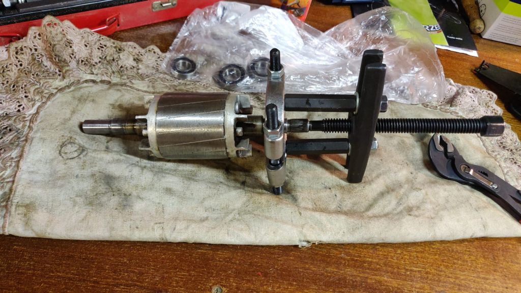 Muutama kierros pesua kaikilla tunnetuilla kemikaaleilla. Laitoin vaihteistoon myös muhjunkeruu magneetin. Sisäänajoon jäi hytikkaöljyt mitkä myöhemmin vaihtui traktorin vaihteistoöljyksi. Tällä rallatus hiljeni hyvin. Jäi vielä tehtävääkin. Ensimmäinen vaihteensiirrin toimii niin, että hammaskosketus jää puoliväliin. Kunhan saa inspiksen niin pitää korjata tuokin. Samalla kiristin hihnan. Onpahan viritys. Ei meinaa mahtua avaimet väliin vaikka kone on pöydästä irti.