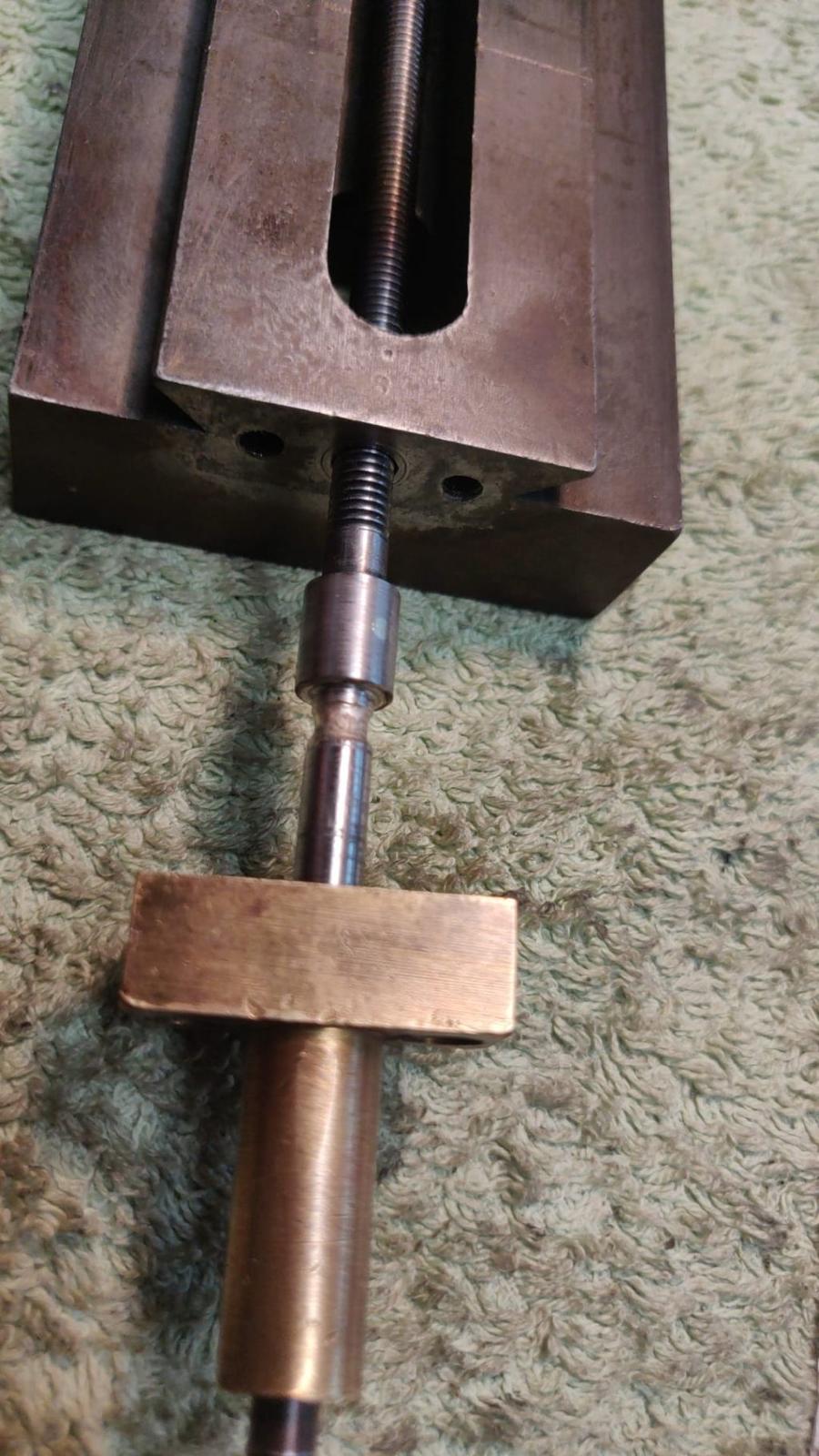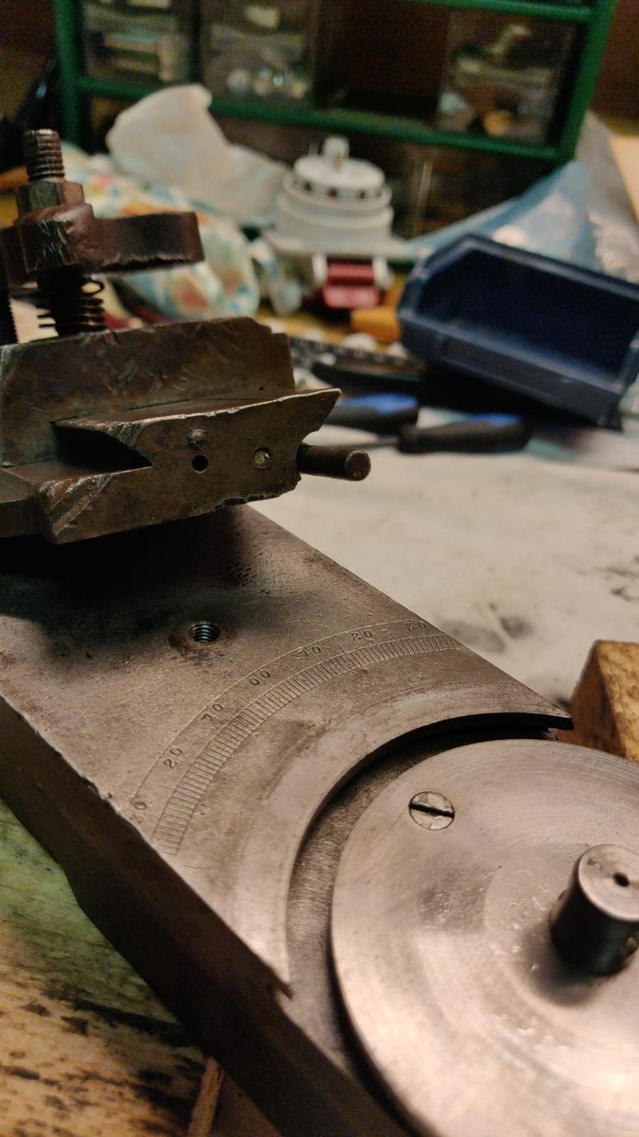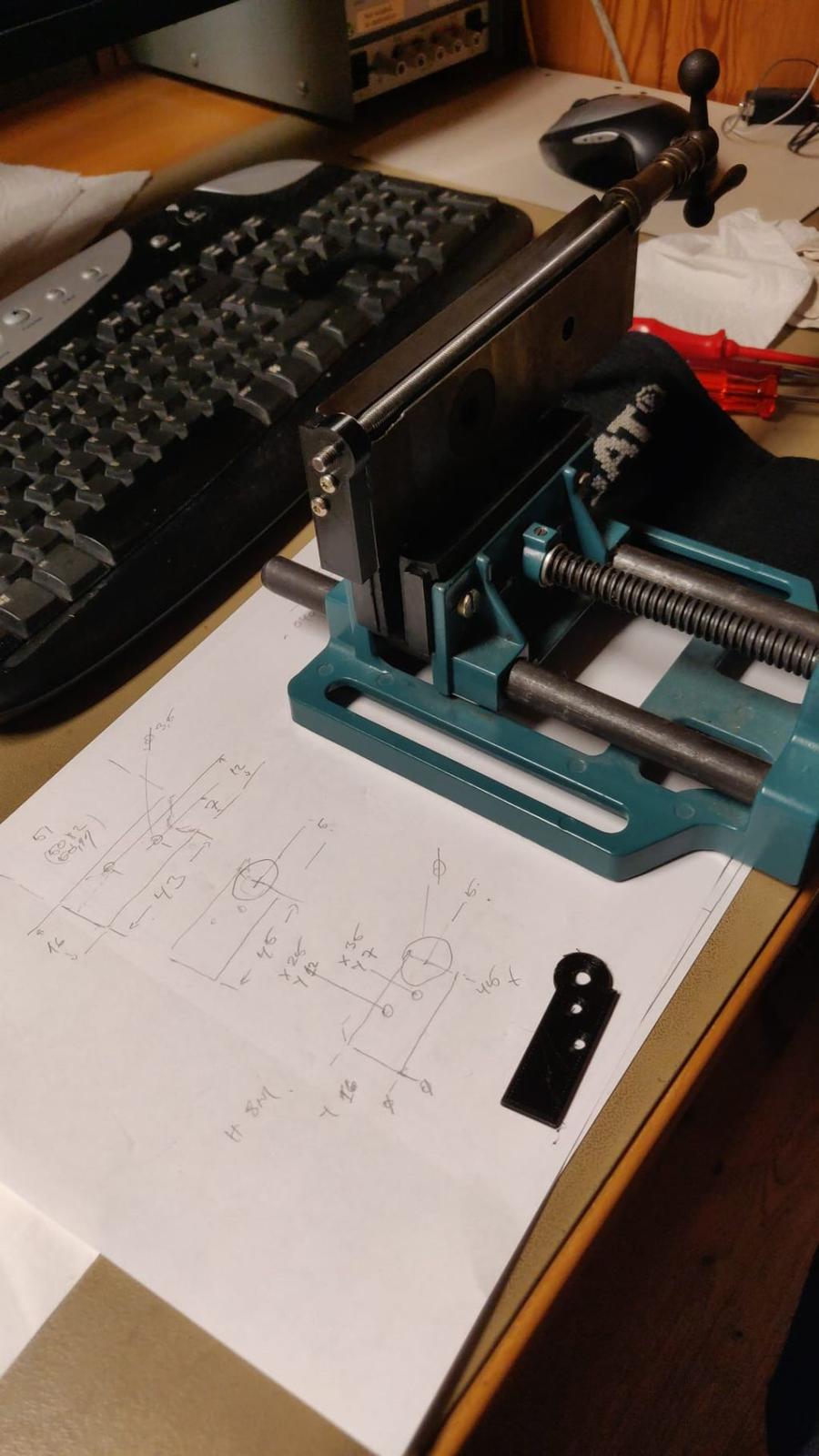 Koneen mukana tuli tällainen 58mm kääpiöpakka. Pakka on kiinni tällaisessa poralaitteessa mikä tulee kärkipylkän tilalle. Putsaus on vielä kesken. Itse pakka huollettu. Tässä oli niitä 3,2x0,6 mm ruuveja. Risan tilalle sorvasinkin yhden uuden kunnes päätin suurentaa kierteet 3,5mm niin saa ruuveja helpommin.