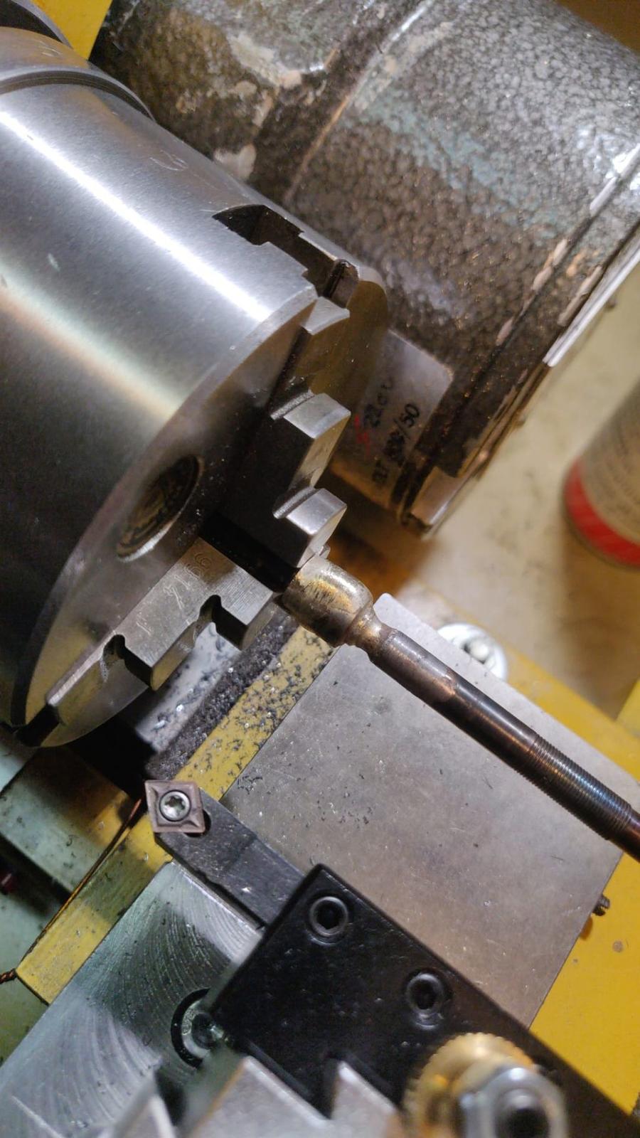 Tässä karan teossa kokeilin miten kilopultit soveltuvat aihioiksi pikkuhommiin. Varmaan laadusta kiinni, mutta 8.8 pultit tuntuvat olevan hyvin sorvattavaa kamaa. Helppo hankkia ja kohtuuhintaisia. Itse kara M12 pultista ja laippa M10 laippapultista. M5 ruuvilla kasaan |