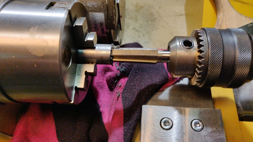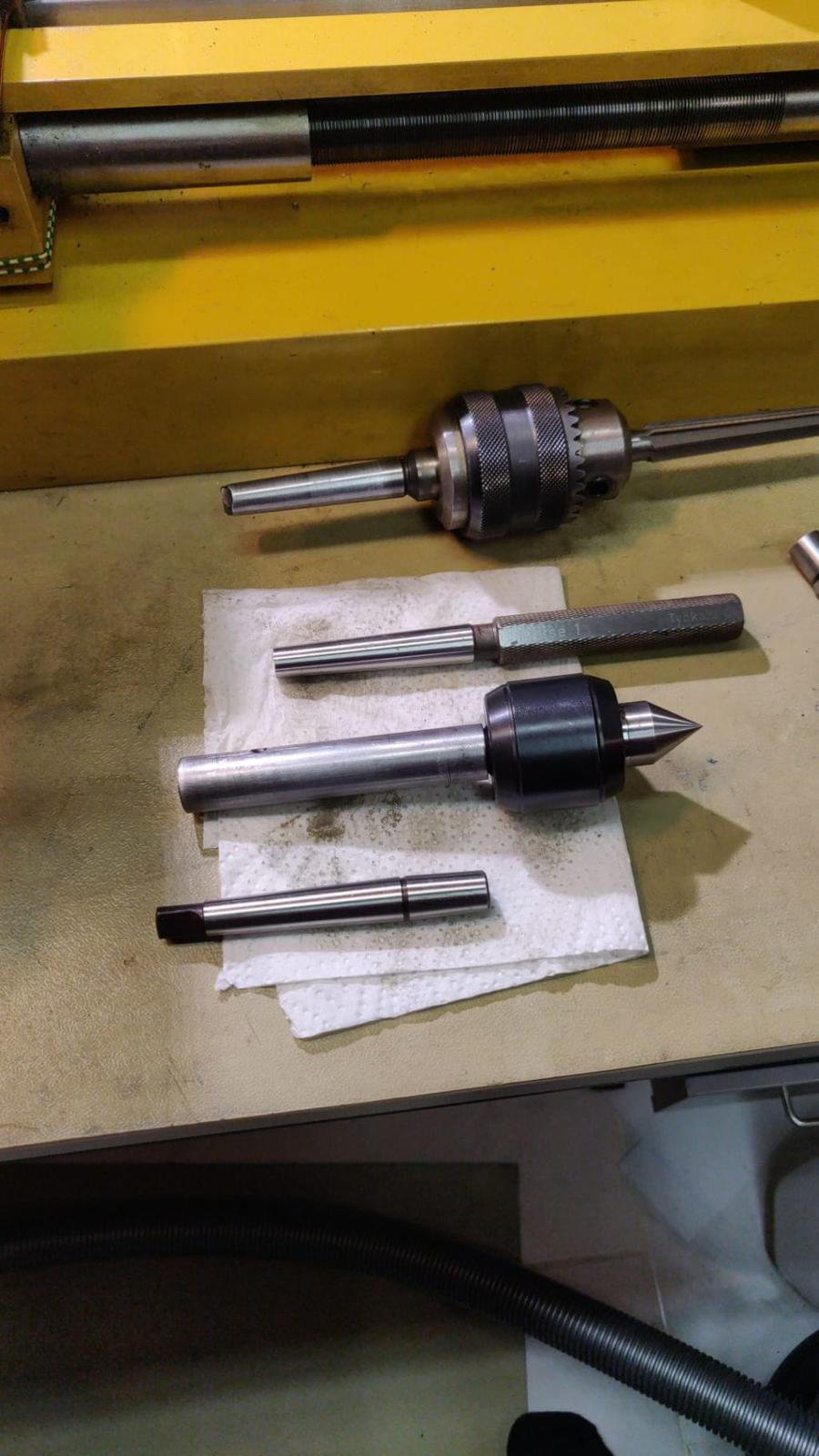 Kärkipylkkään ei koneen mukana tullut mitään työkaluja. Tutkimuksissa ei selvinnyt minkälainen kartio kärkipylkässä on. Taas tuumaamisen jälkeen päätin avartaa sen MK1 kokoon. Täyttä syvyyttä siihen ei saa liikkeen kärsimättä. Tässä koneessa momentit niin pieniä, että MT1 kartion voi hyvin lyhentää puoleen.