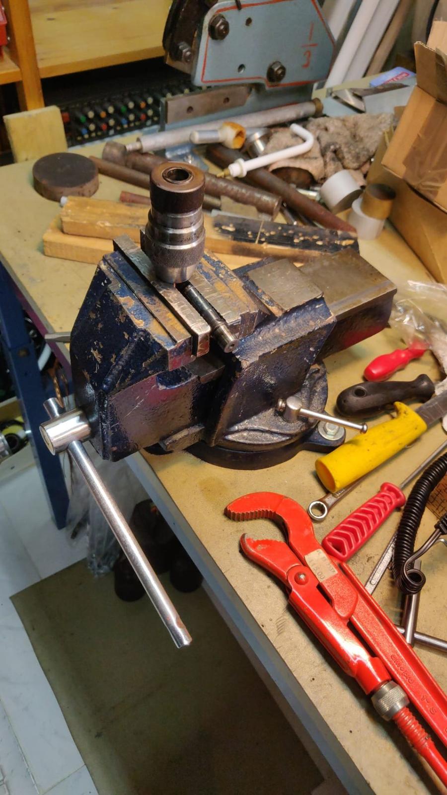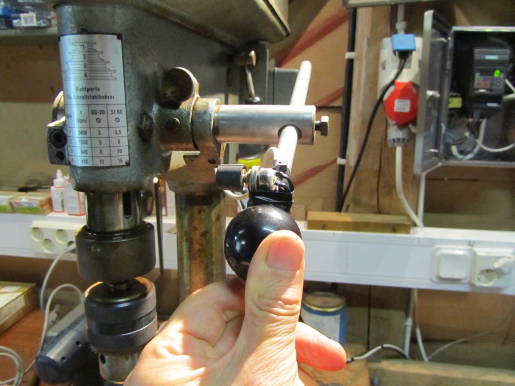 Faijjavainaa osti tämän uutena joskus 70-luvun alussa. Moka vaan oli, että pajalla oli silloin rautalankalinjalla toimitettuna 220V valovirta. Kone oli tietenkin 3-vaihe moottorilla. Jäi kirjaimellisesti vuosikymmeniksi nukkumaan nurkkiin. 90-luvun lopulla sivistys ja 3-vaihe sähkö oli saavuttanut pajan ja porakone pääsi käyttöön. Ei tollasta oikein voi muuten luonnehtia kuin sanomalla, että ihan oikea työkalu. Tehty käyttöön. 2012 kone koki modernisoinnin kun laitoin siihen taajuusmuuttaja draivin. Ei ole tämän jälkeen tarvinnut hihnoja vekslailla. Pieni innovaatio oli laittaa nopeus-saatö syöttövipuun. Vähän on alkanut kylmässä talvehtiminen näkymään koneessa, mutta muuten priimakunnossa. |