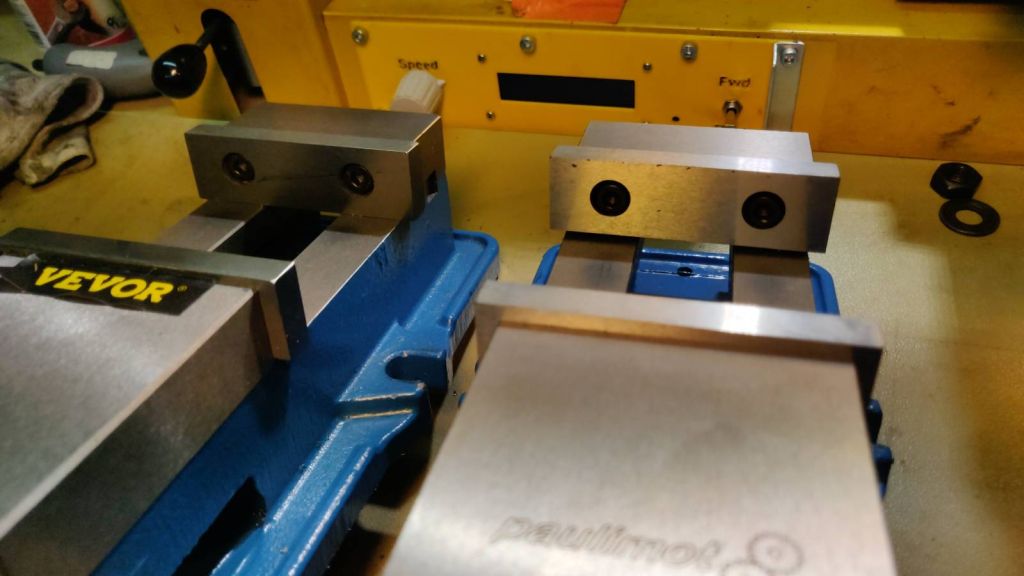 Tilasin samalta myös uuden koneruuvipuristimen. Kiinalainen tämäkin on, mutta painoa 20 kg, ja melko asiallinen. Vanha oli halvinta ja kevyintä p*sk**, murtunut ja lattaraudalla jo kertaalleen korjattu.