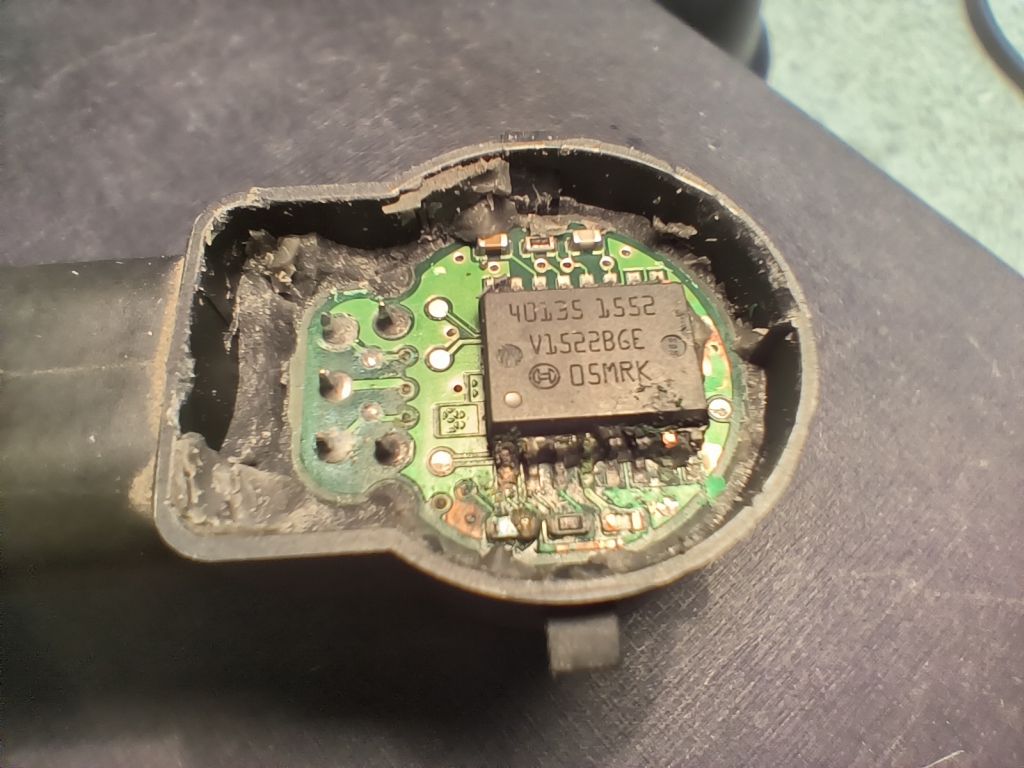 Risaa anturia tutkittaessa tuli mieleen tutkia erikseen siinä olevan trensduucerin (piezo elementti) kunto ja toiminta. Anturia naputtamalla elementistä irtosi helposti yli 20V jännite.